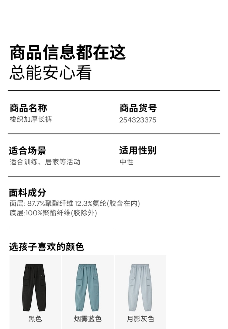 【12月-特惠福利】Under Armour安德玛儿童梭织加厚长裤254323375