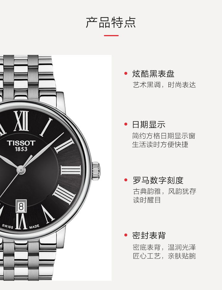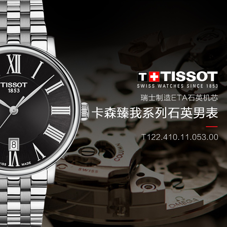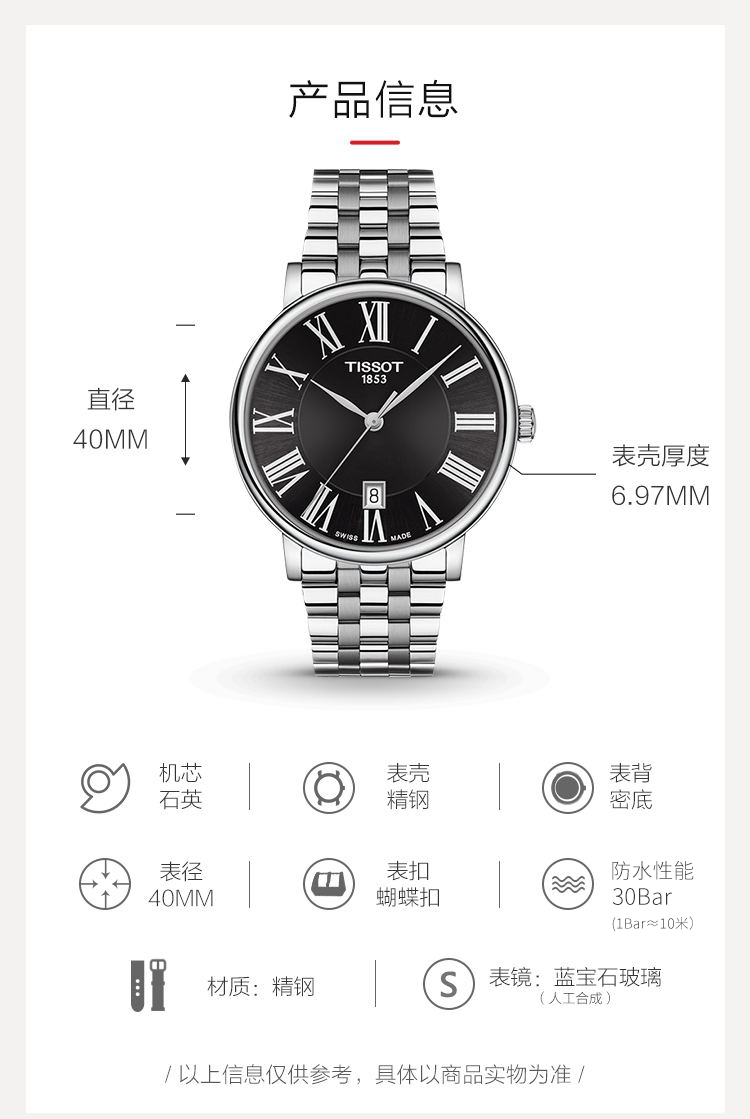 天梭Tissot卡森系列石英男表黑盘钢带 T122.410.11.053.00