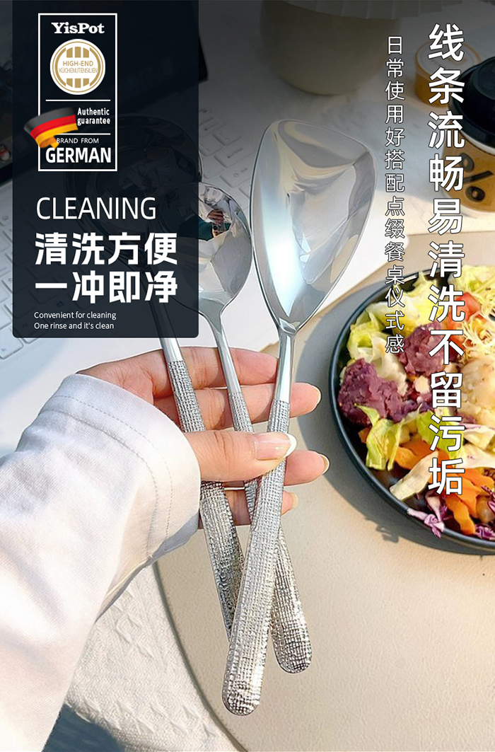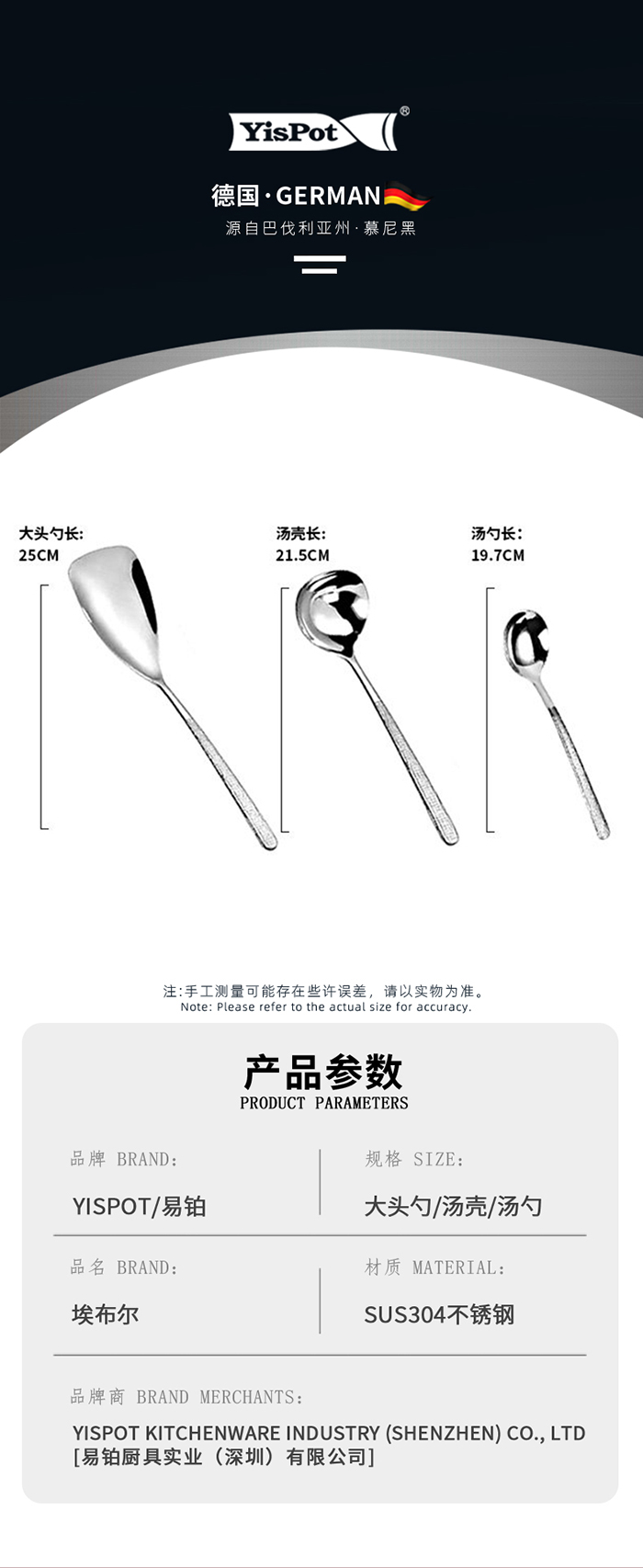 【50积分+29.9元】易铂yopo 家用钢勺 锤纹勺三件套 镜面抛光色泽出众
