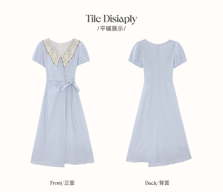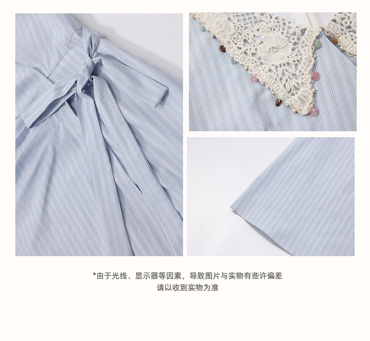 鹿向南「蓝屿漫梦」夏季新款蓝色条纹V领系带收腰时尚连衣裙女DYL661987