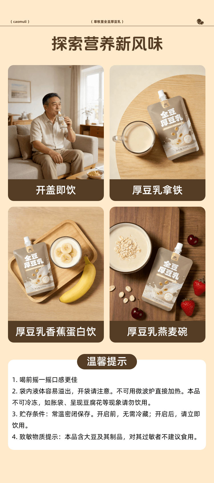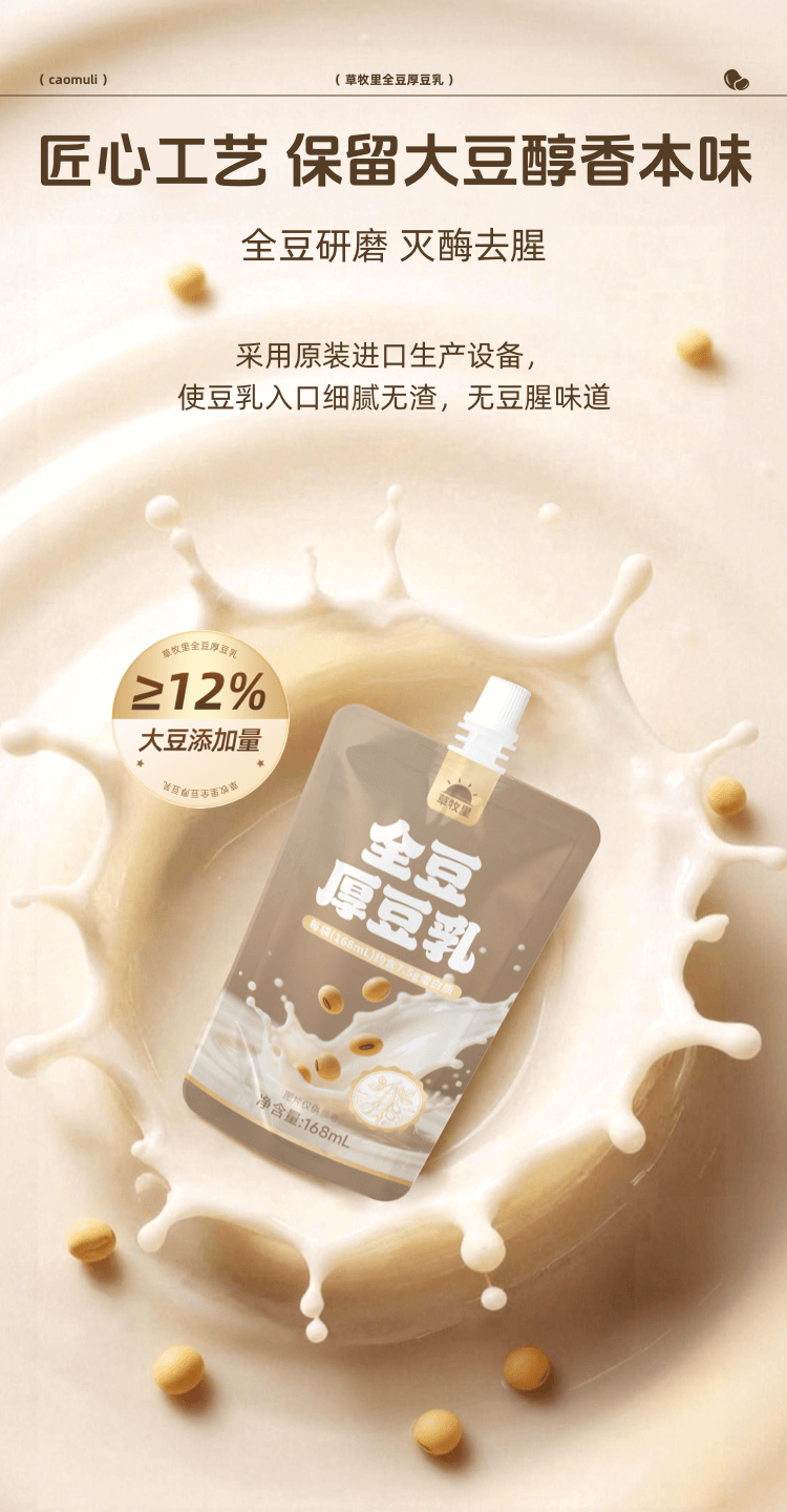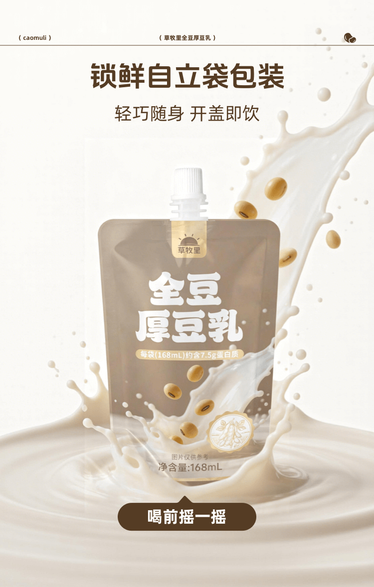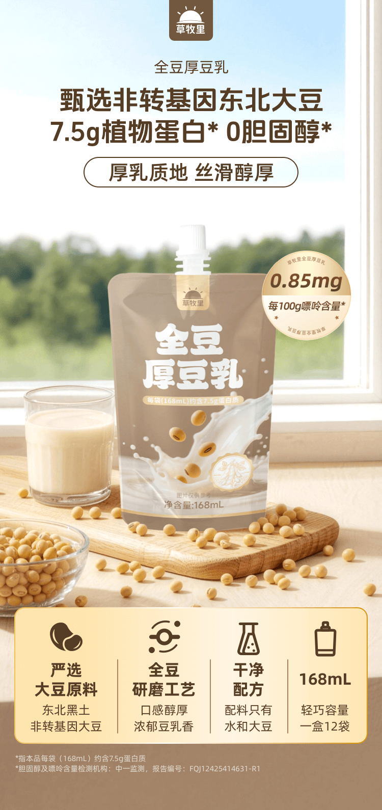 【0315晚直播】【全豆研磨】草牧里 全豆厚豆乳 168ml*12袋/箱 厚乳质地丝滑醇厚(早餐好物)