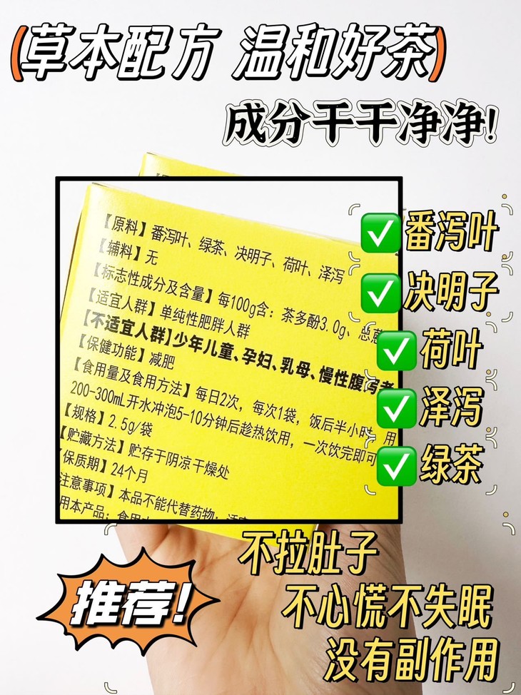 【成分】番泻叶、绿茶、决明子、荷叶、泽泻