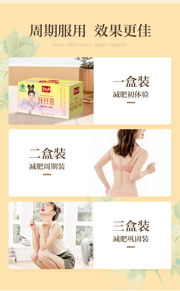 5.减肥茶怎么喝:前三天纤纤茶,每天中午饭后喝一包。三天后中午纤纤(1包)晚上纤纤(1包),搭配运动效果更佳。