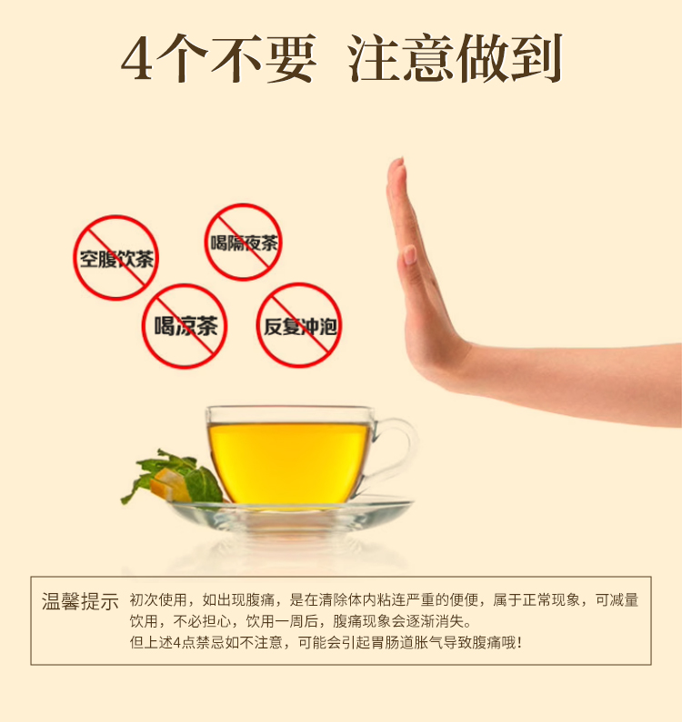4.一般8小时左右会有体感,初次服用会有排便增多的情况,是属于正常情况,排的是肠道里的宿便和垃圾,喝几天会有明显好转的