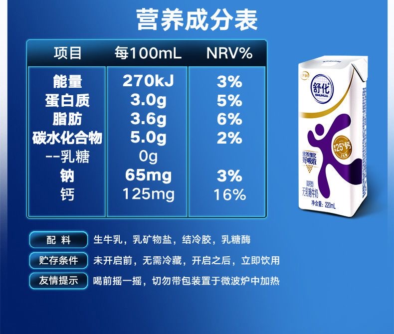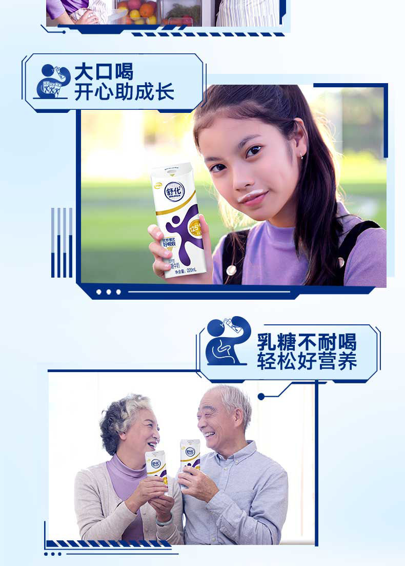 【伊利】舒化高钙无乳糖牛奶220ml*12盒*1箱