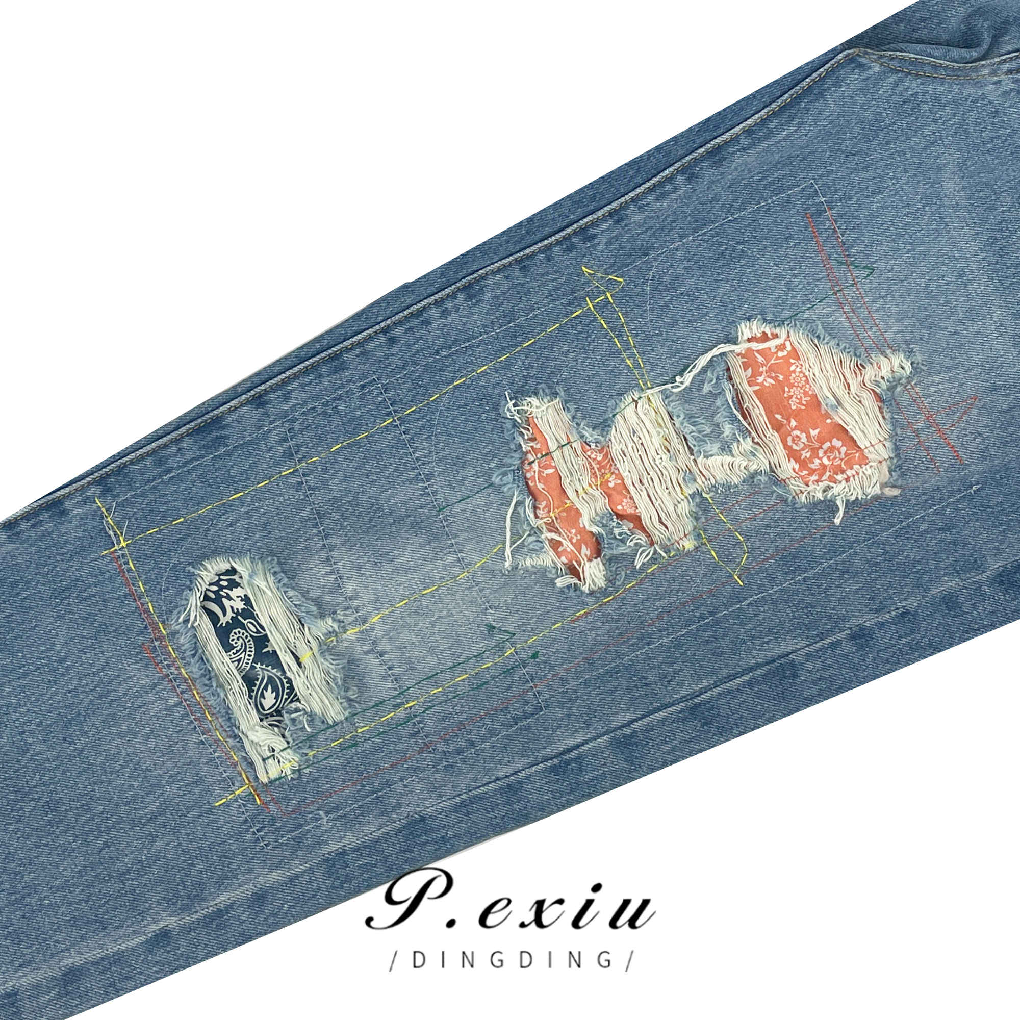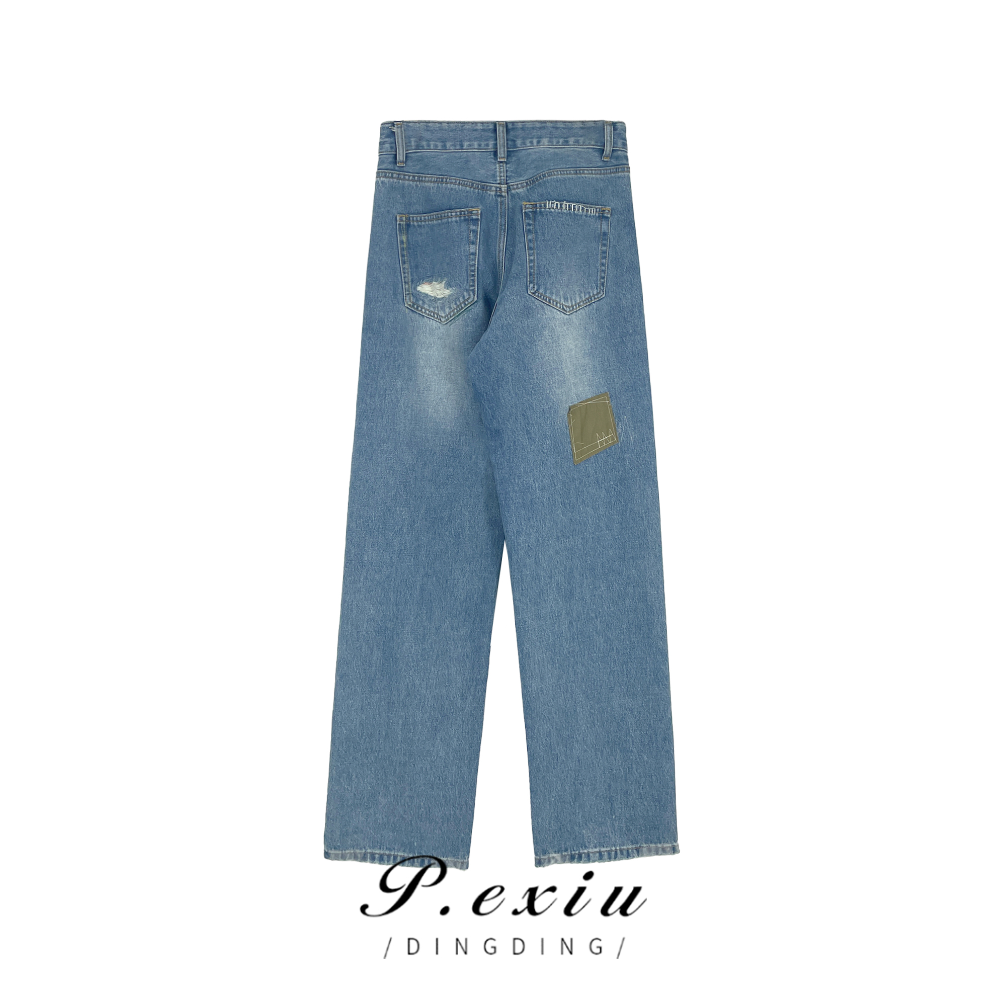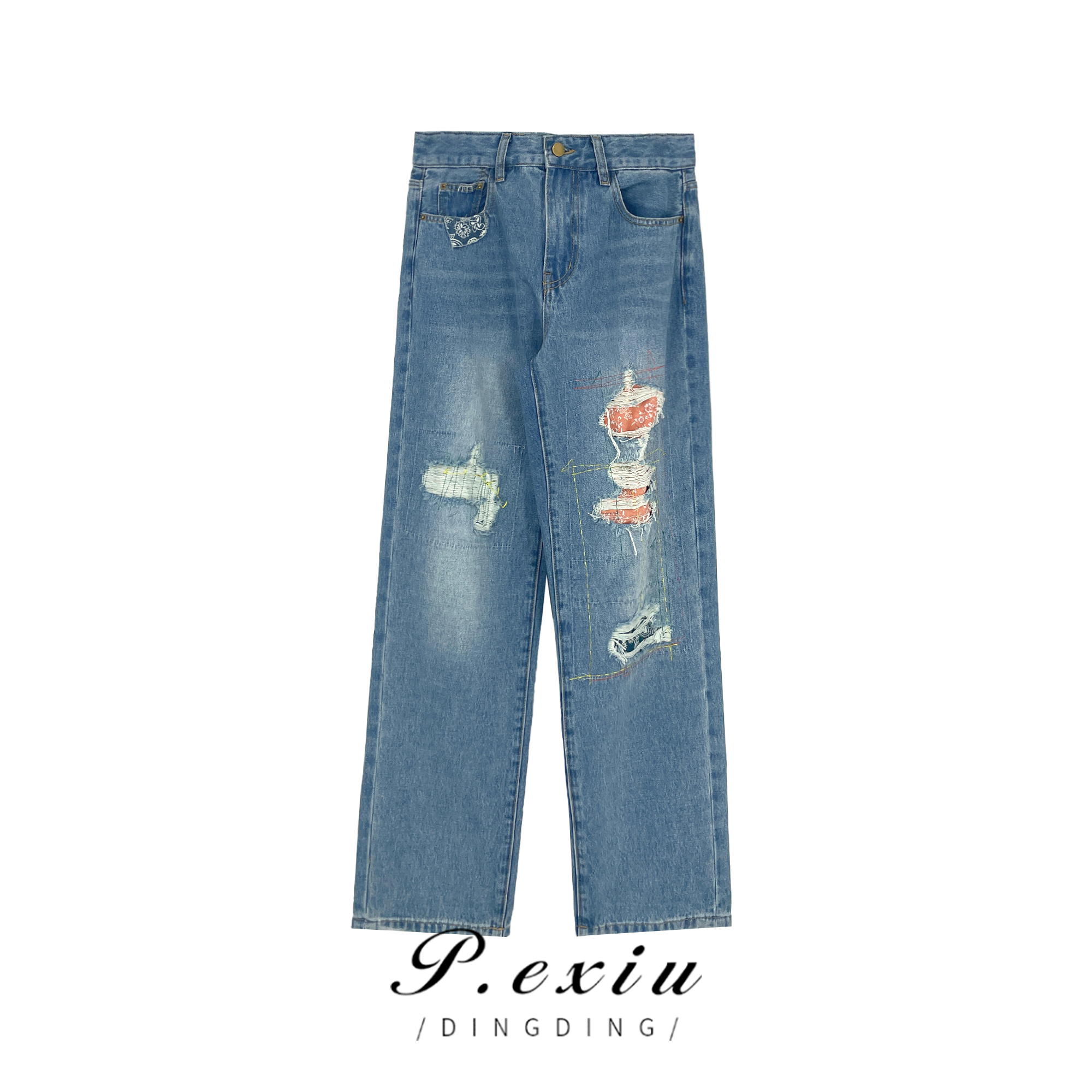 04-6潘依绣丁丁宠粉【牛仔乐队】设计款宽松破洞哈伦牛仔裤 D5800