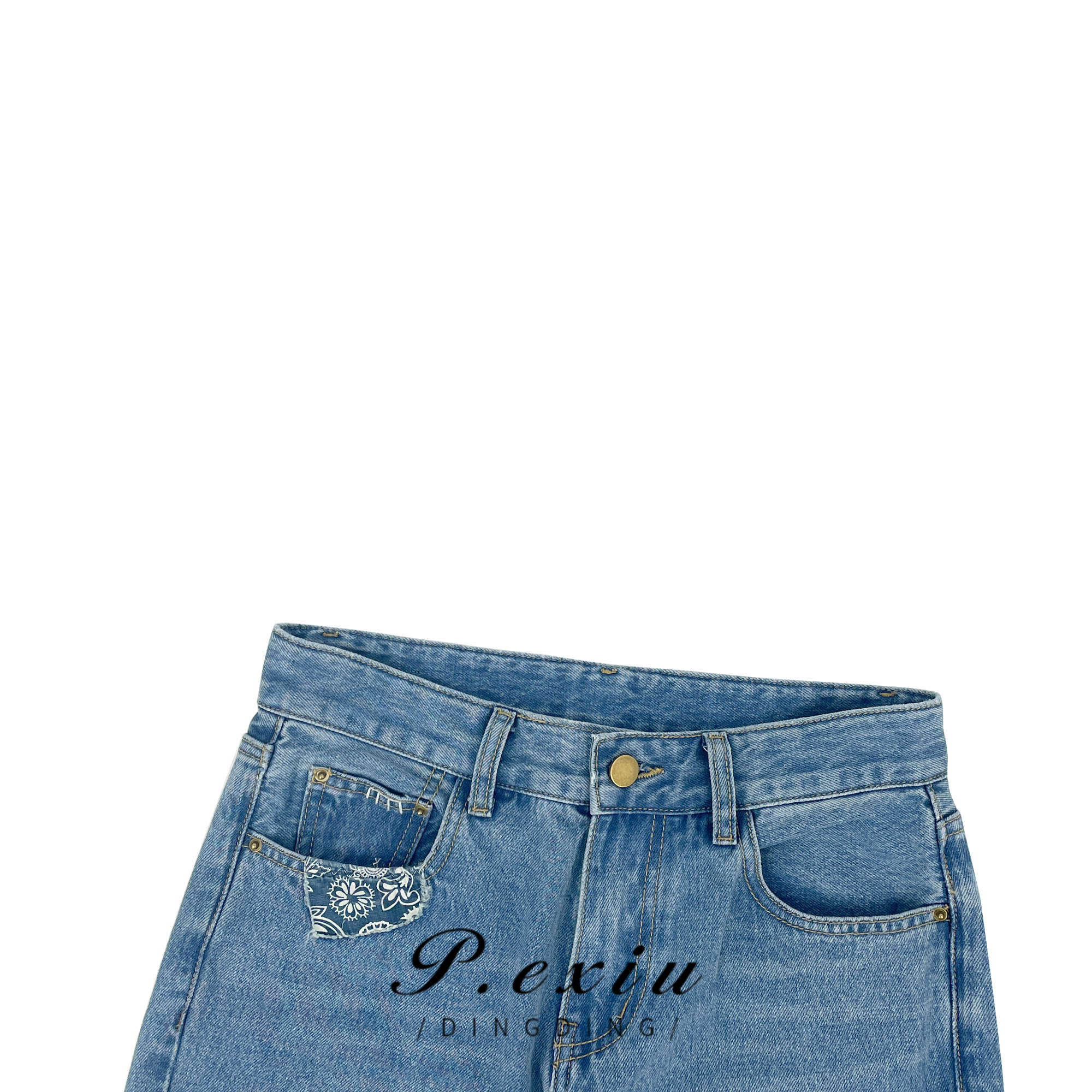 03-4潘依绣丁丁宠粉PanYiXiu/潘依绣100%棉立体剪裁褶皱设计松弛随性牛仔长裤 D6589