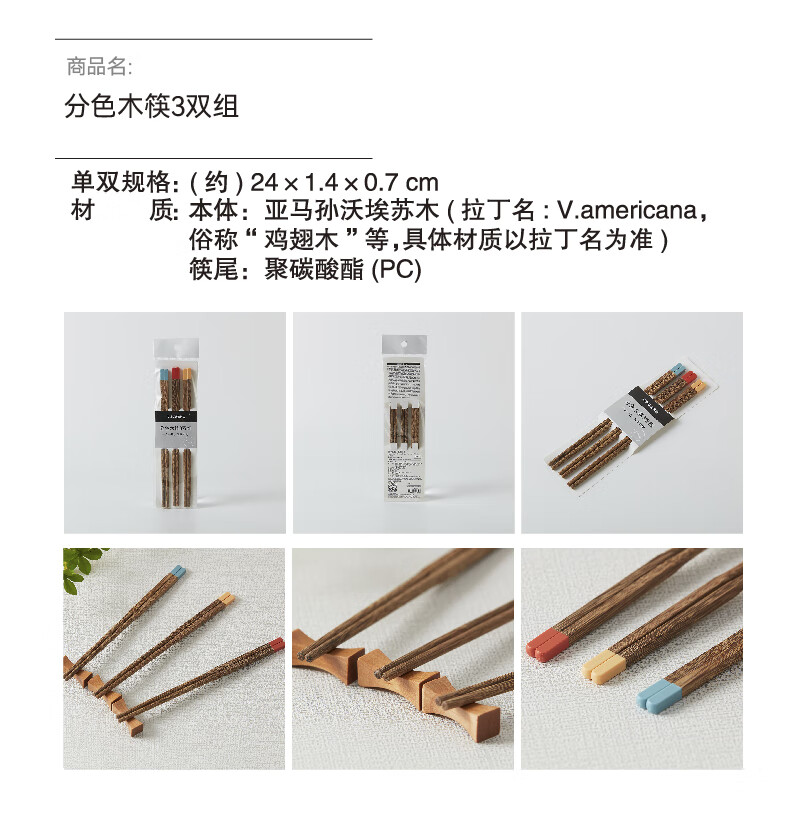 NITORI宜得利家居 木质吃饭筷子彩色一人一筷家用分色木筷