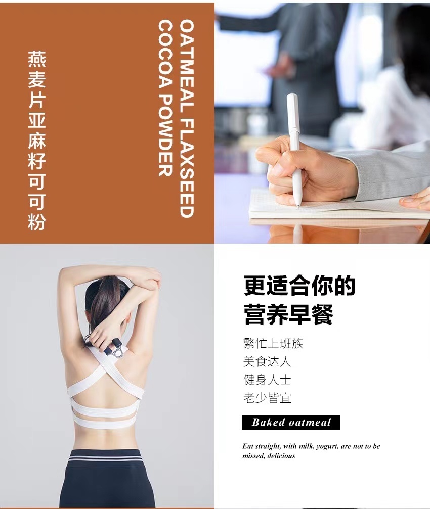 【卖点】1..全能型早餐选手!帕姐必吃省心三合一花样燃脂餐【燕麦亚麻籽可可粉】零添加甄选食材,赢在起跑线饱腹感强,