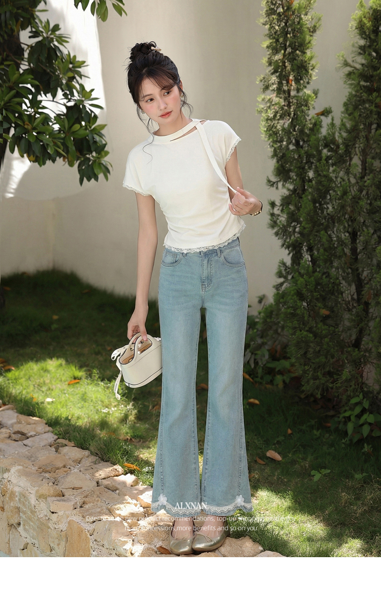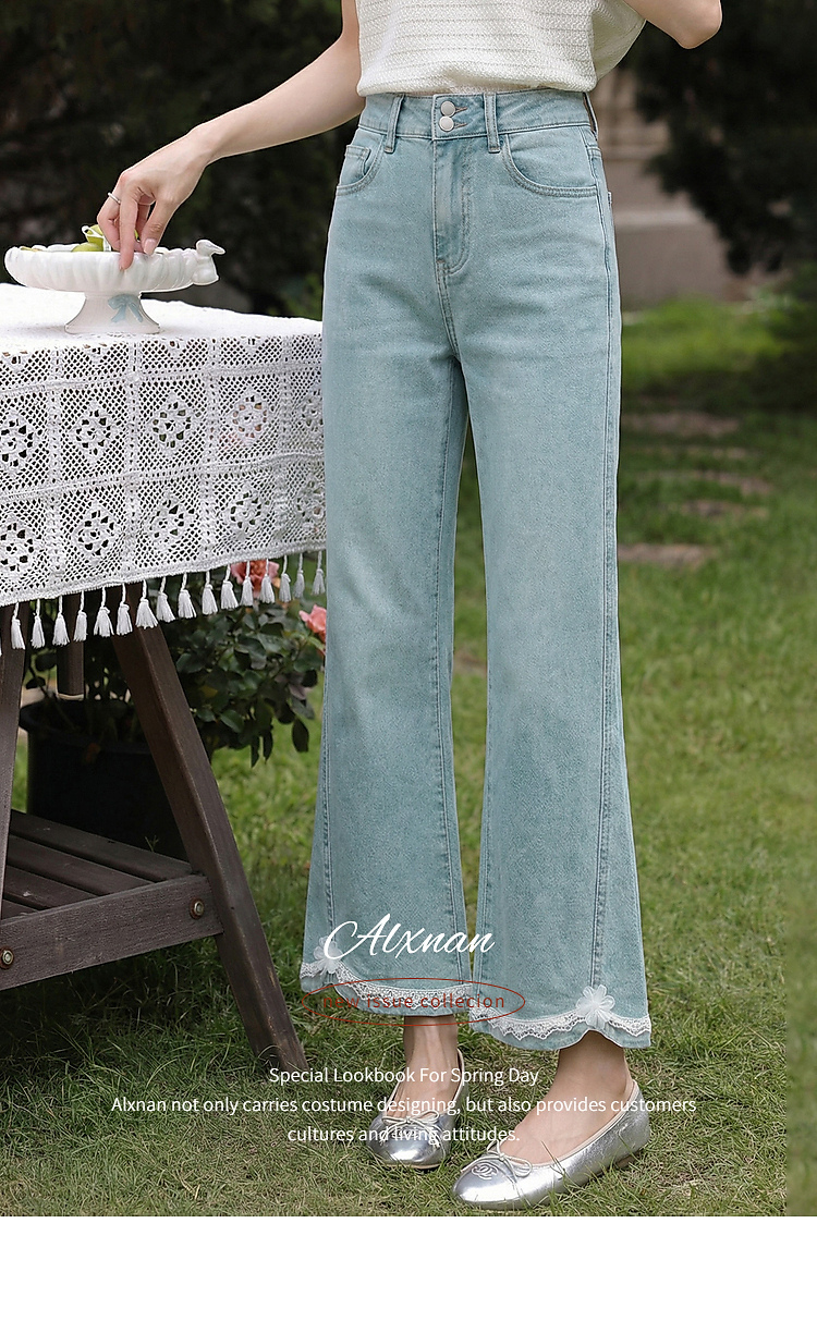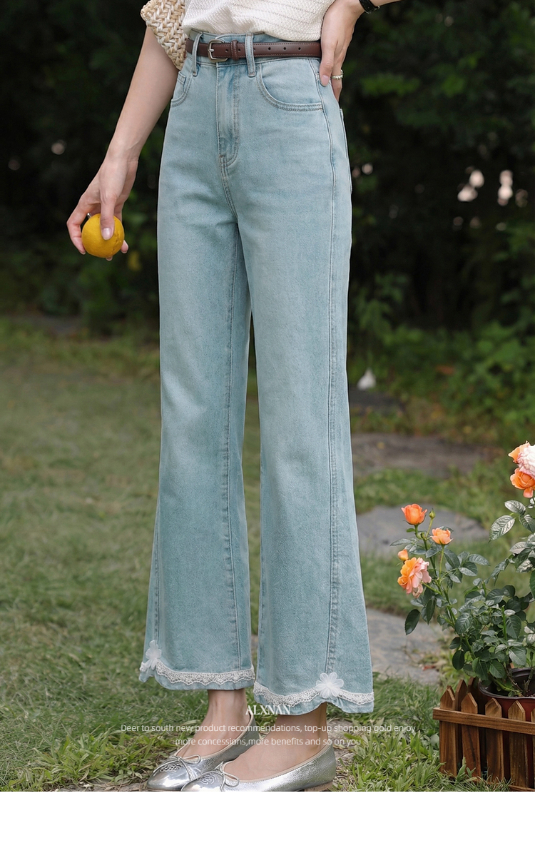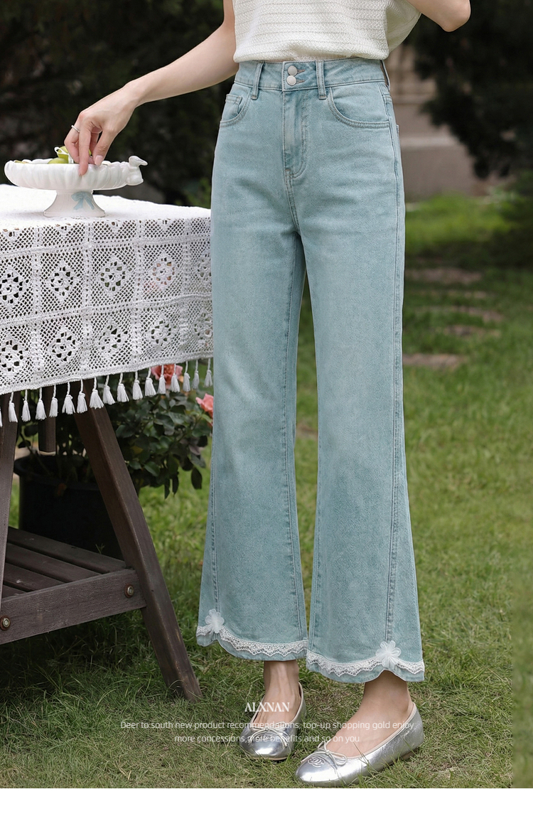 鹿向南「蓝调手记」蓝色高腰牛仔裤女春季韩系松弛感九分微喇裤