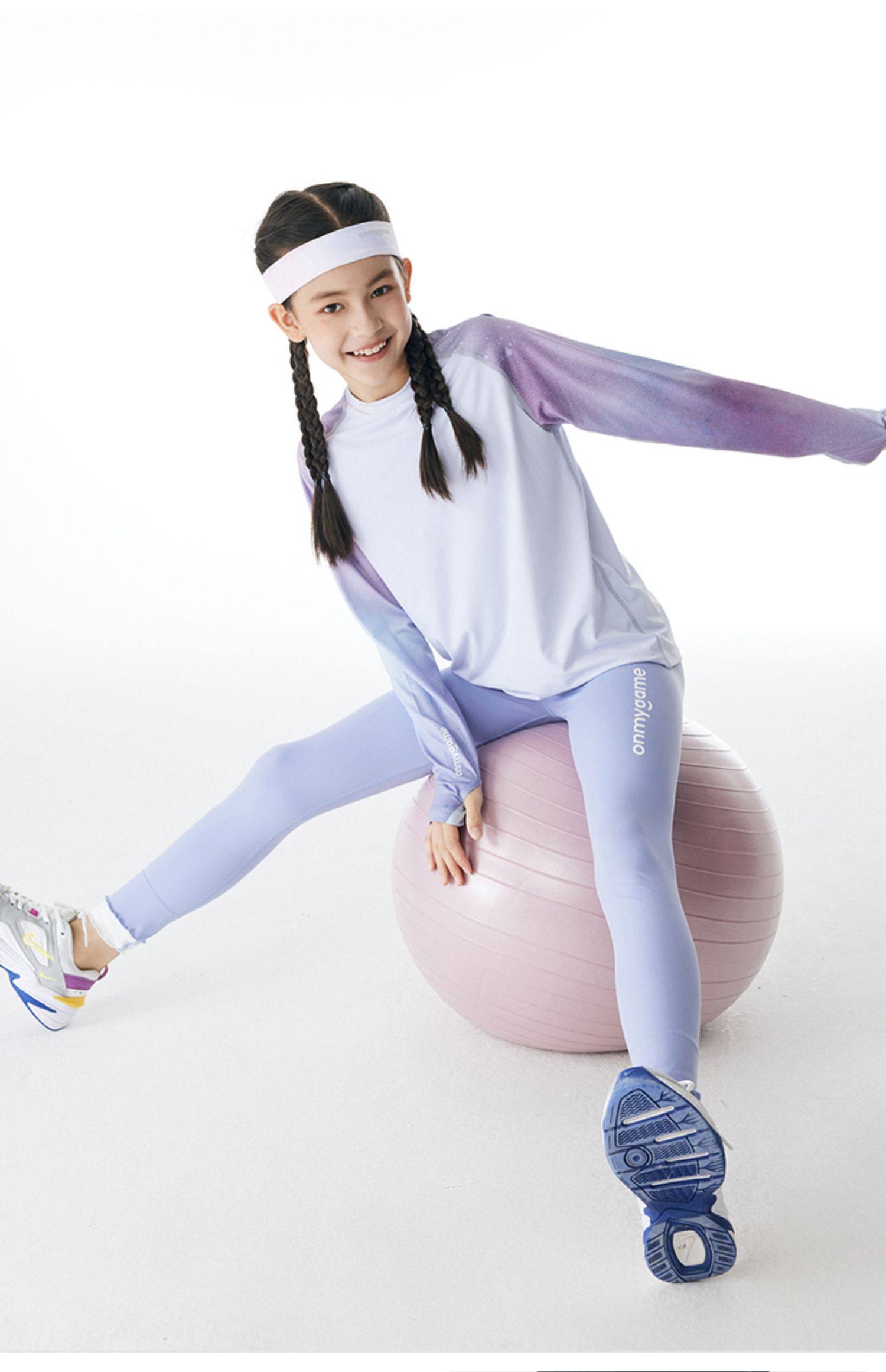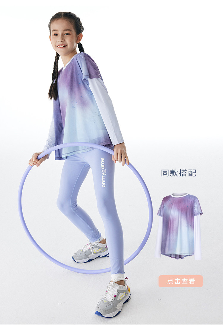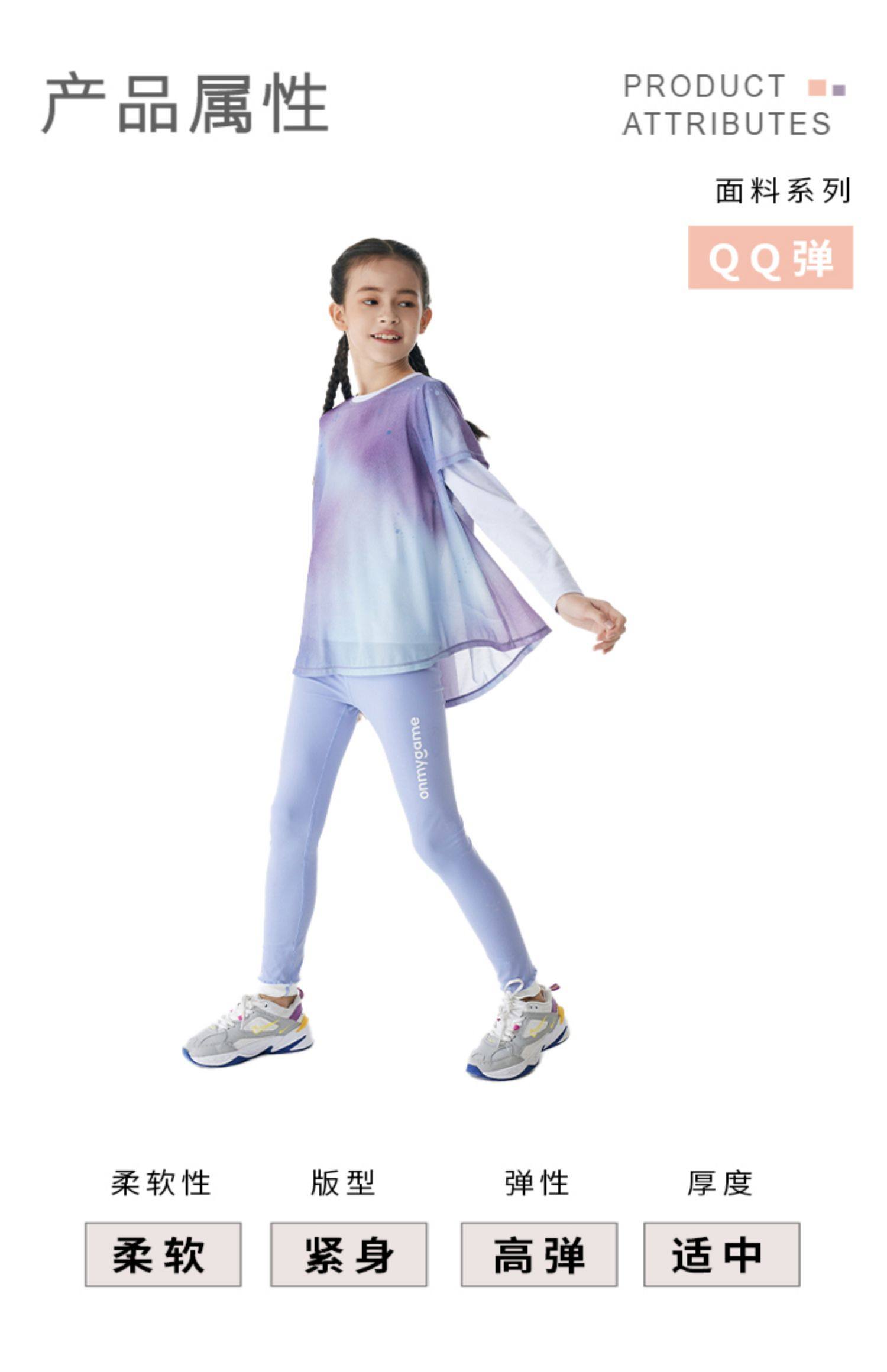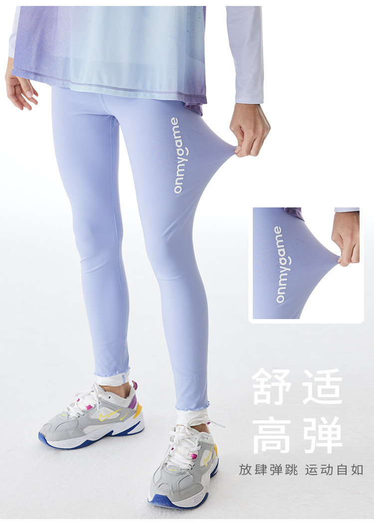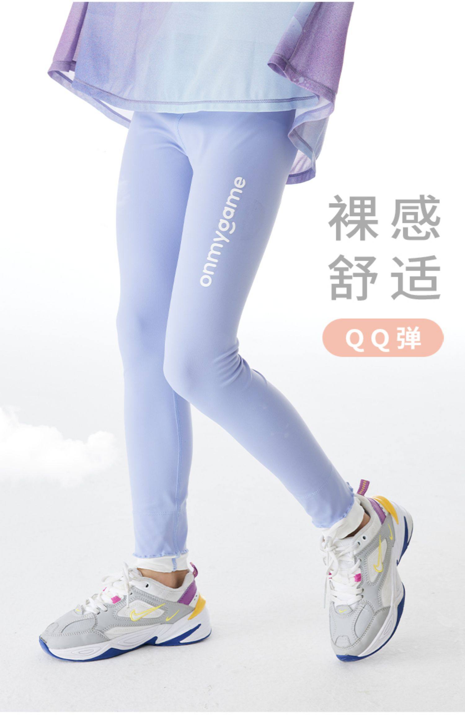 onmygame女童弹力打底裤春装紧身训练瑜伽裤儿童运动裤鲨鱼裤
