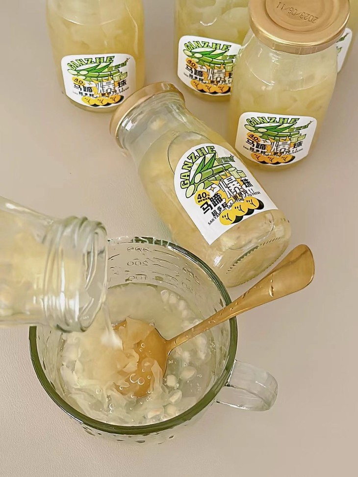 每一口都是扎扎实实的小料 说是饮料💬也可说是“营养小罐”💬 银耳爆珠嚼着喝 简直是完美搭档 口感层次肥肠丰富 甜而不腻 清新可口 咕咚一瓶 根本喝不够!