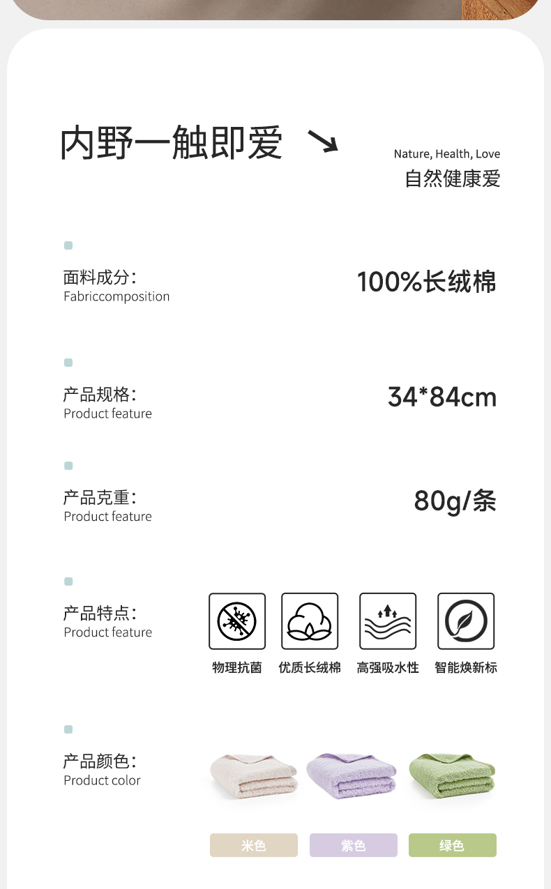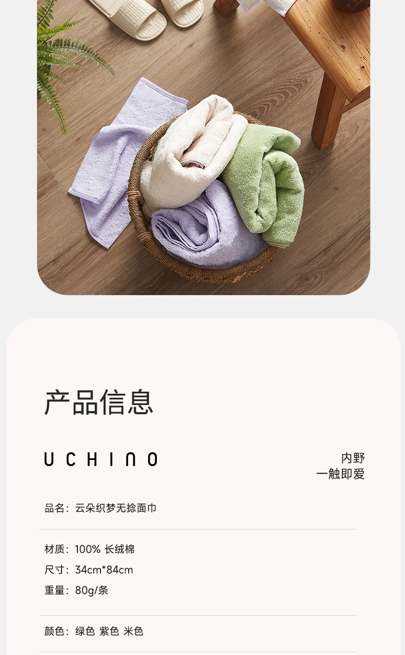 内野X-云朵织梦无捻新疆长绒棉面巾 34*84cm
