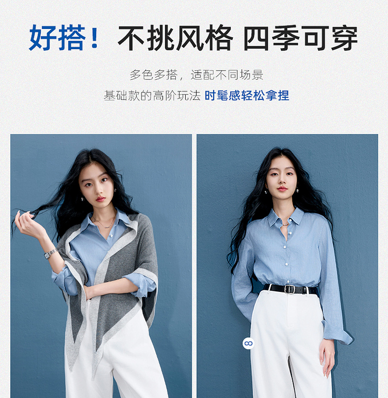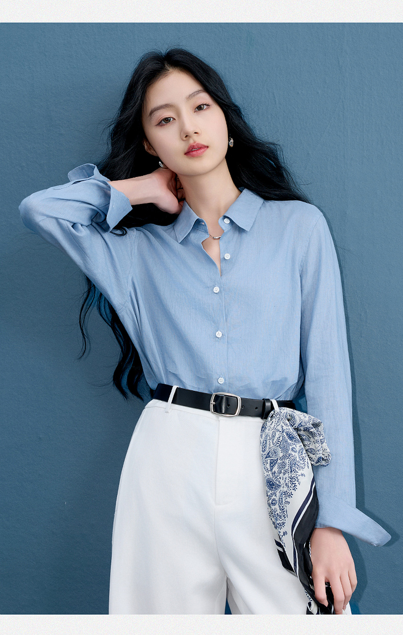 【六好氧气衫】[100亚麻]三彩2025秋季新款纯色衬衫翻领宽松衬衣极简风Z