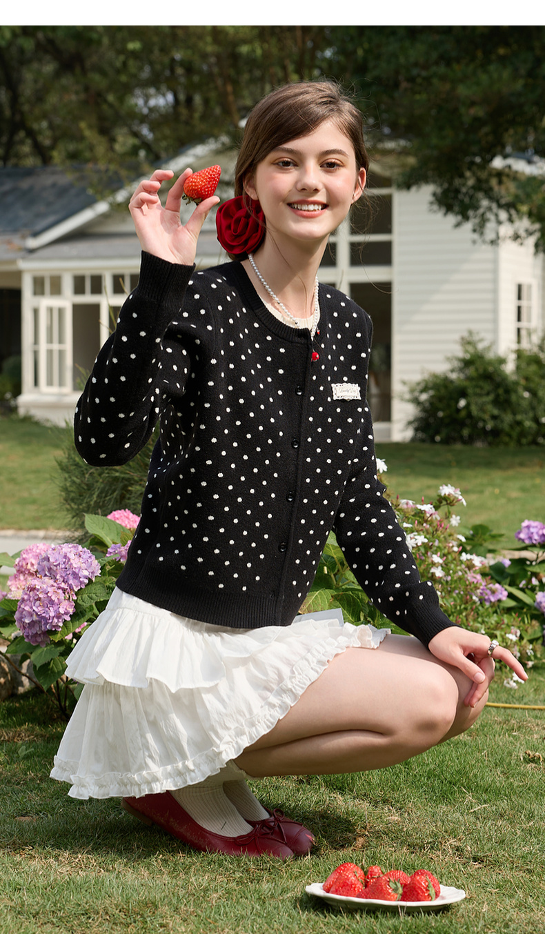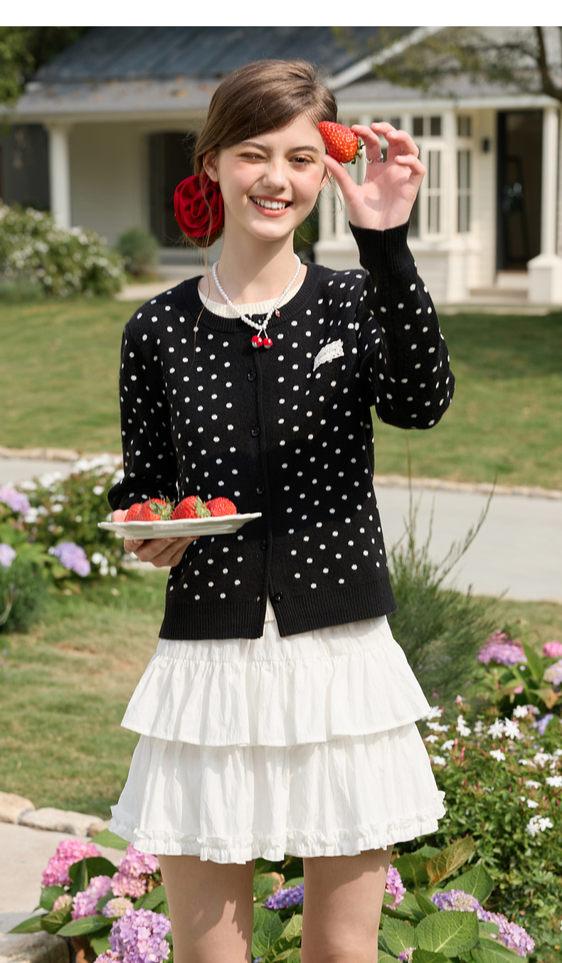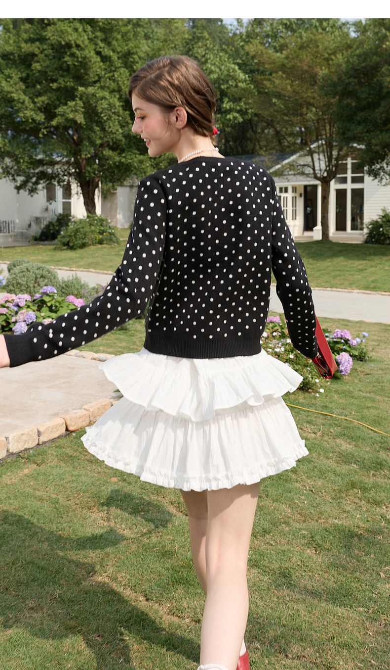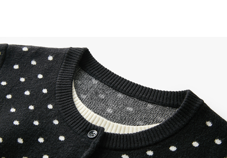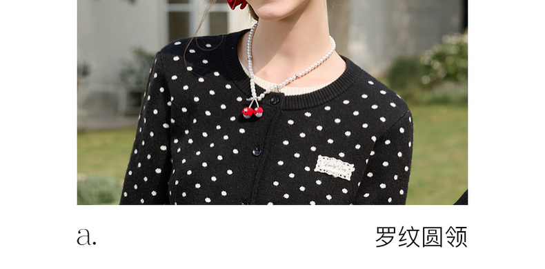 三彩独醒2026春季新款复古波点假两件针织衫圆领毛衫长袖休闲F