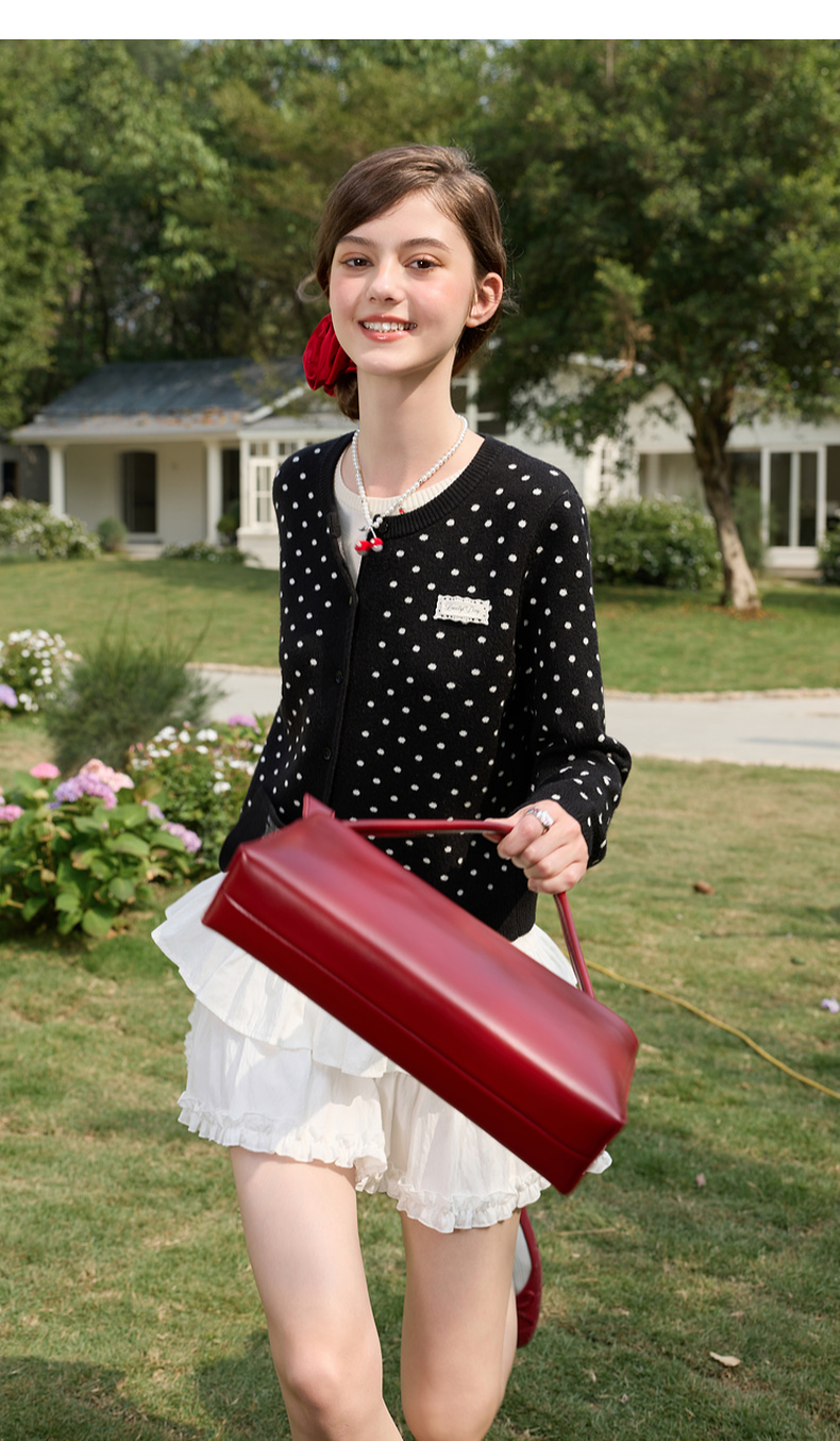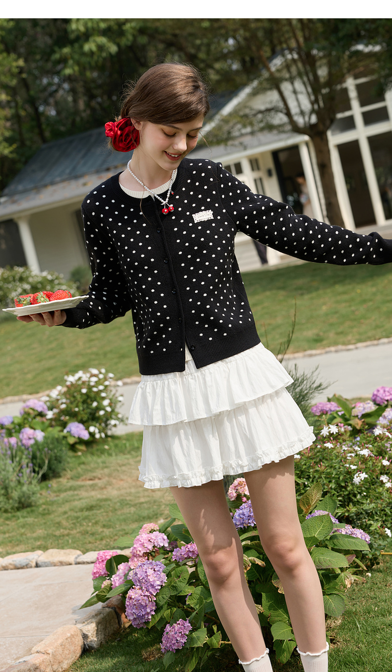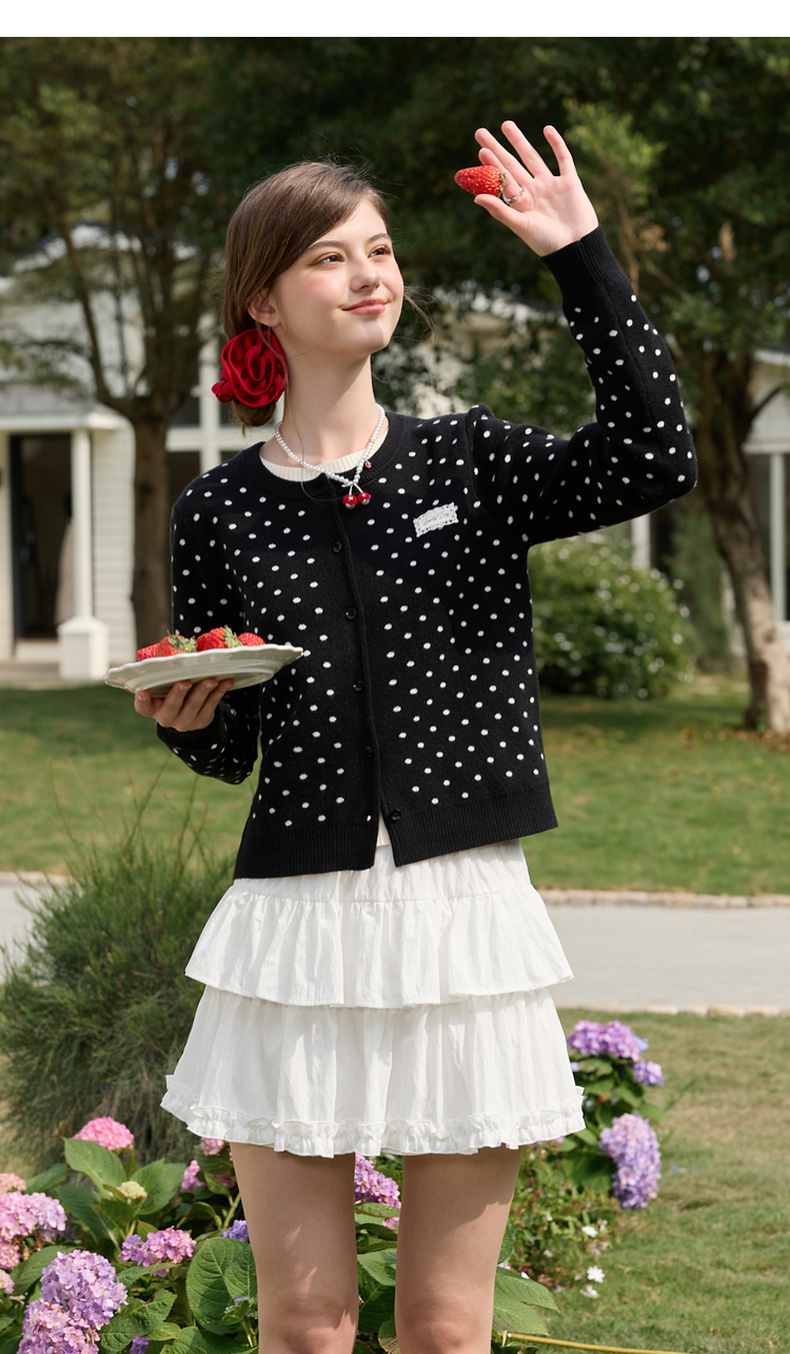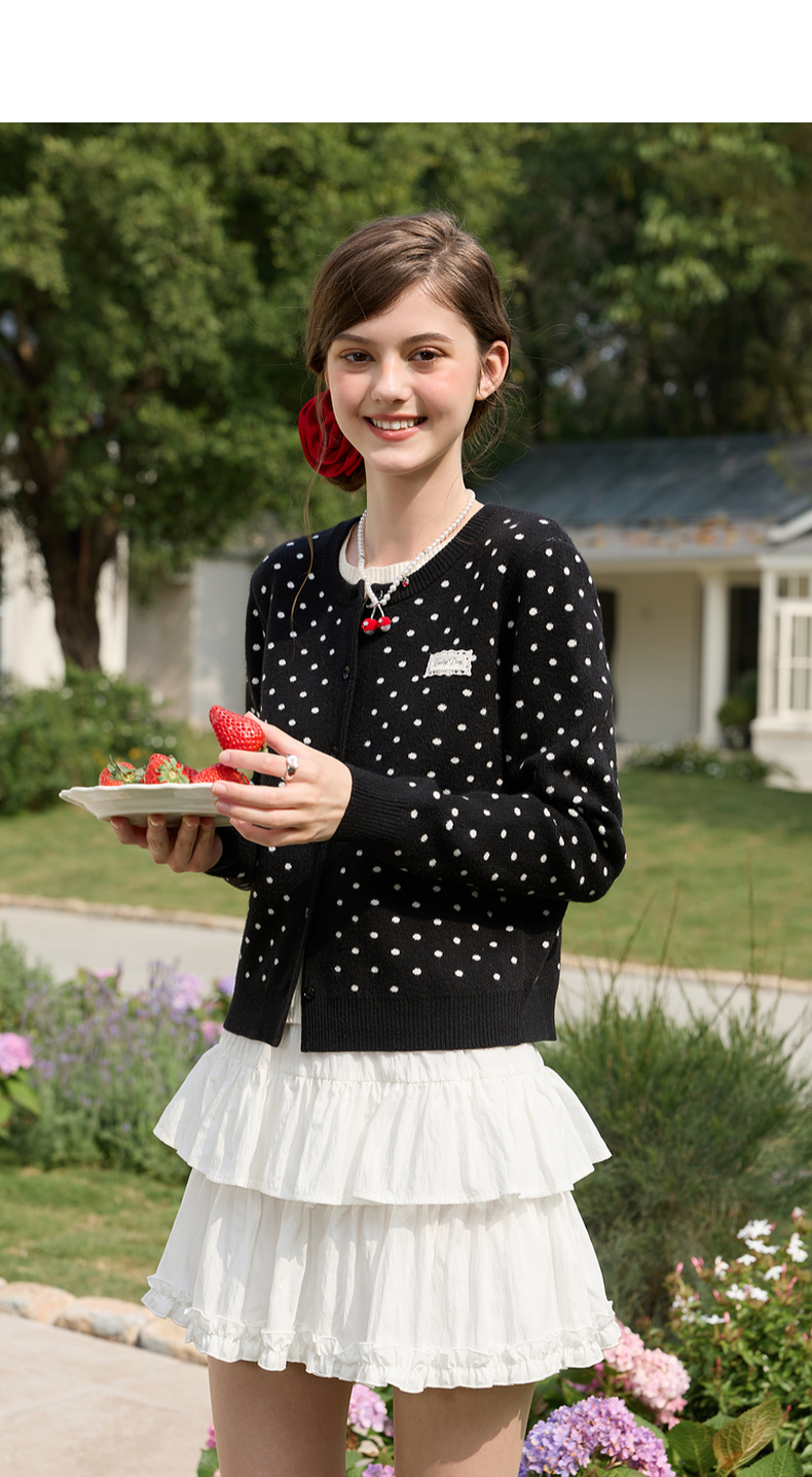 三彩独醒2026春季新款复古波点假两件针织衫圆领毛衫长袖休闲F