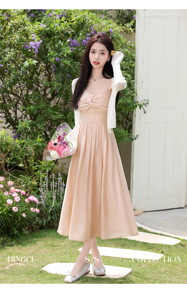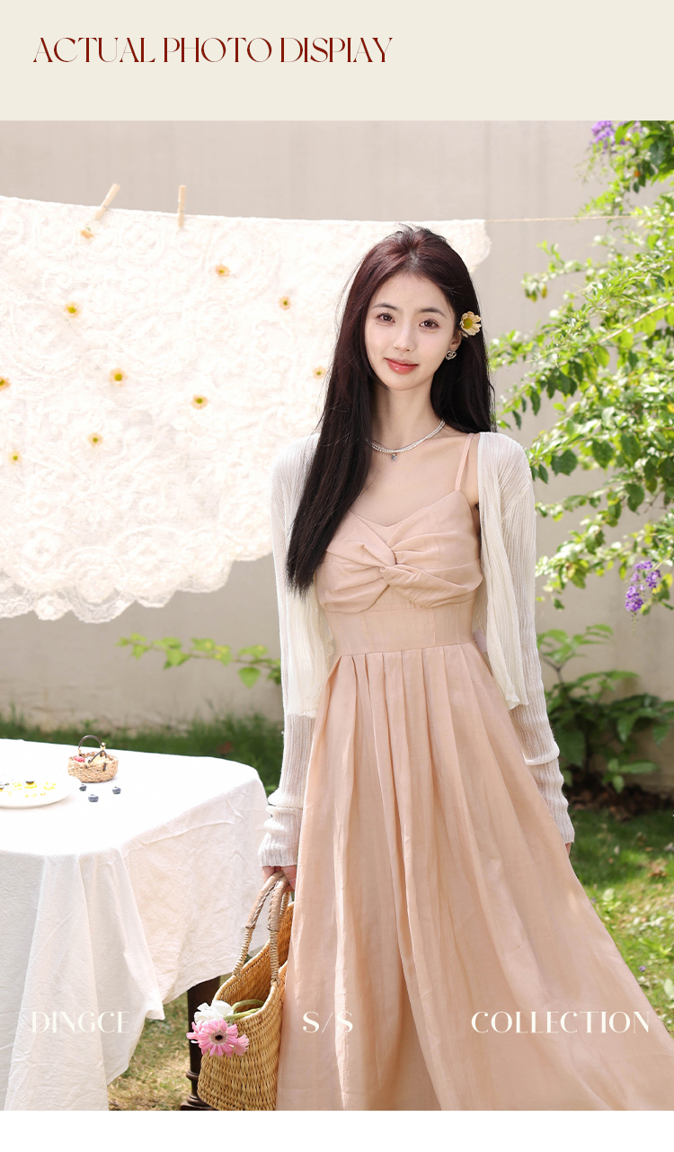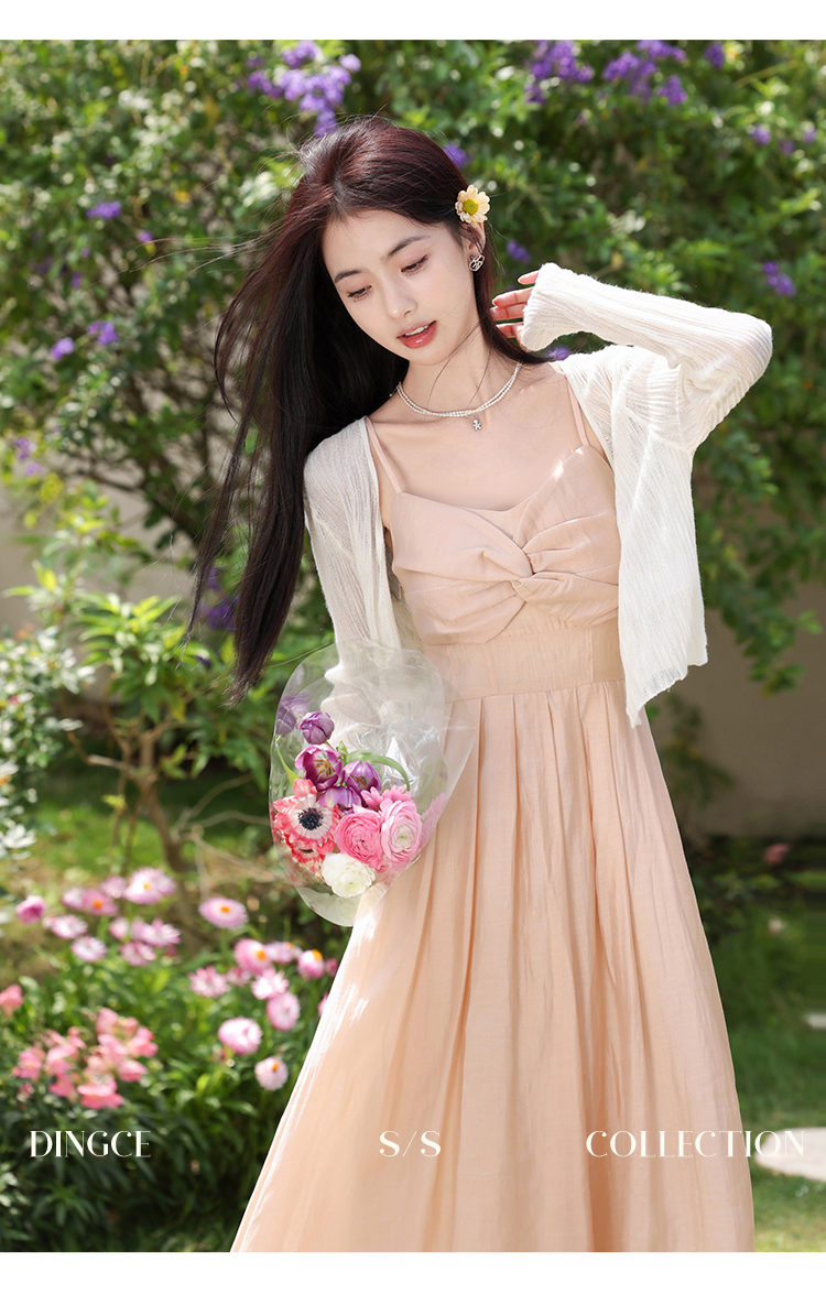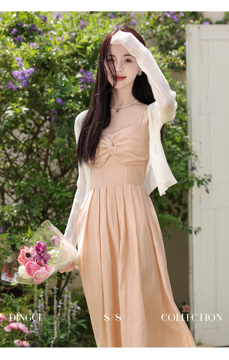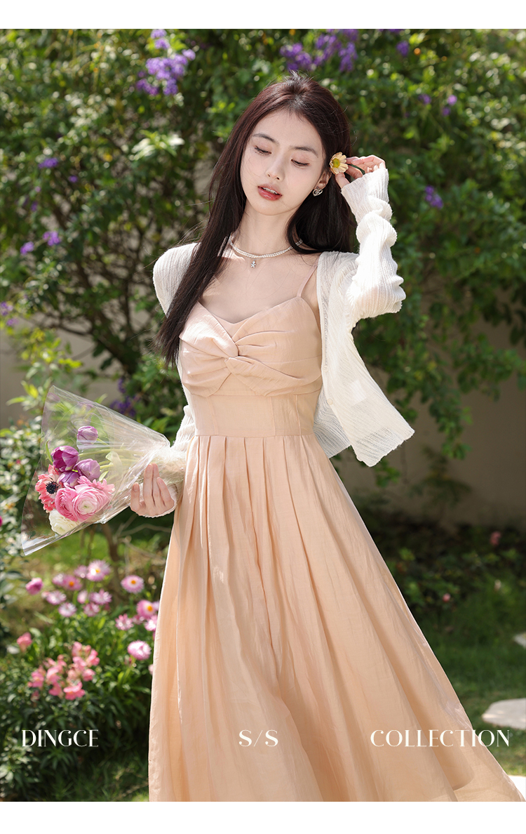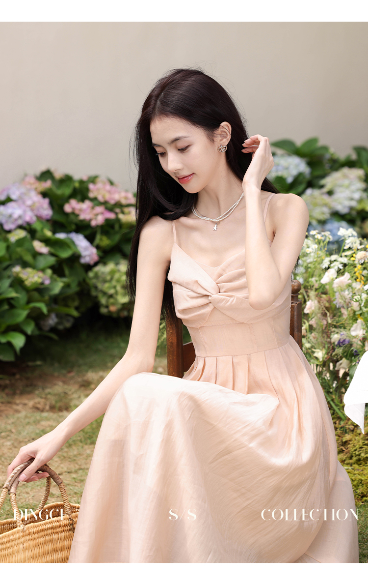 鹿向南 小个子「半岛甜茶」温柔风气质连衣裙女夏季法式吊带裙DC01005