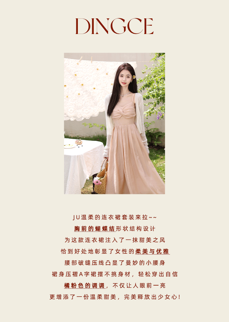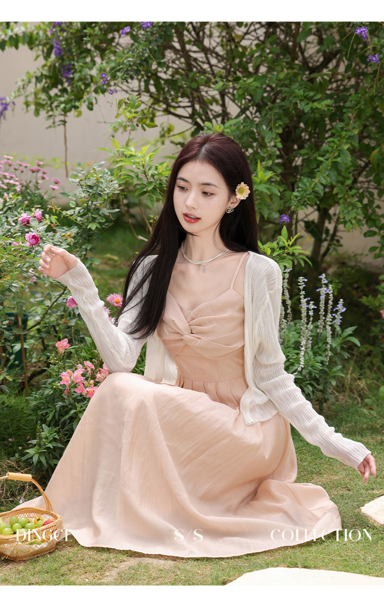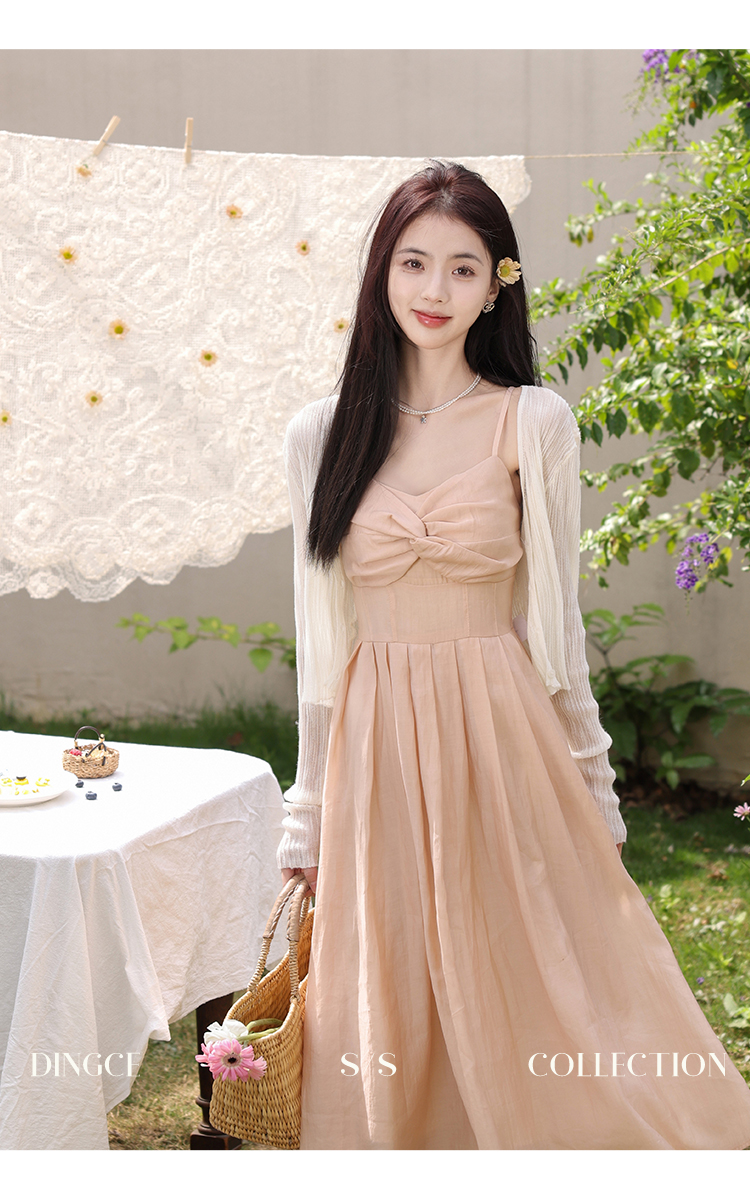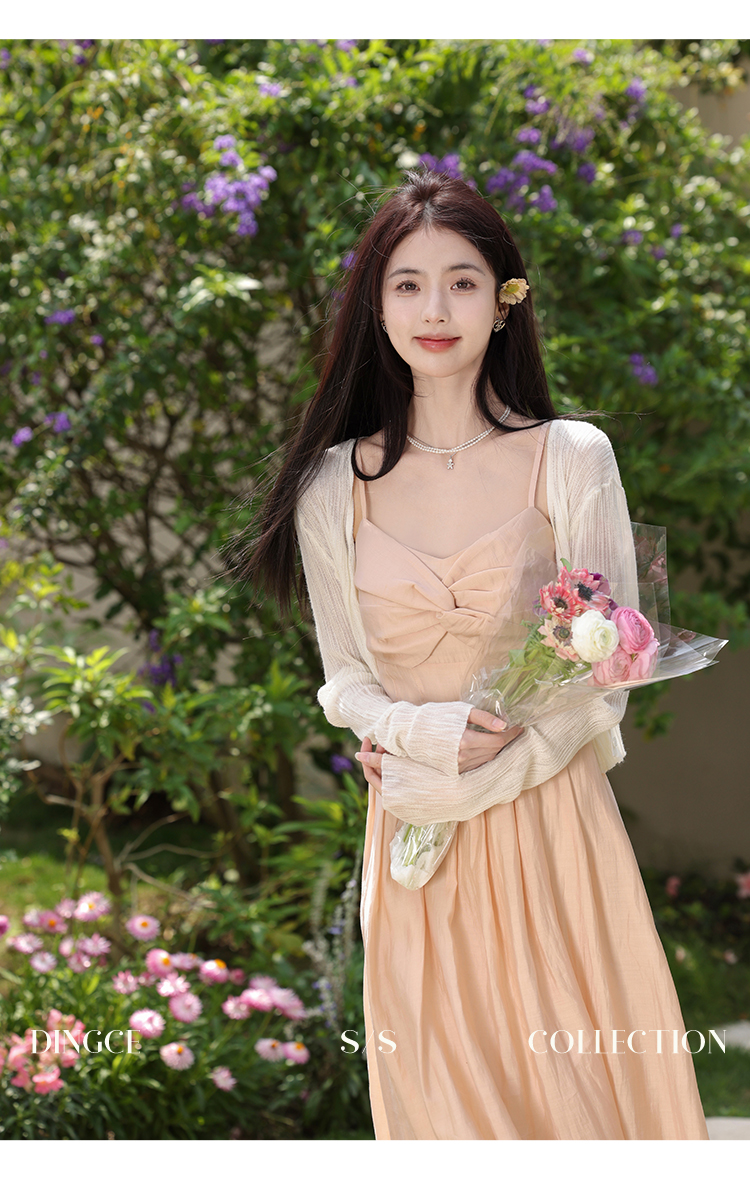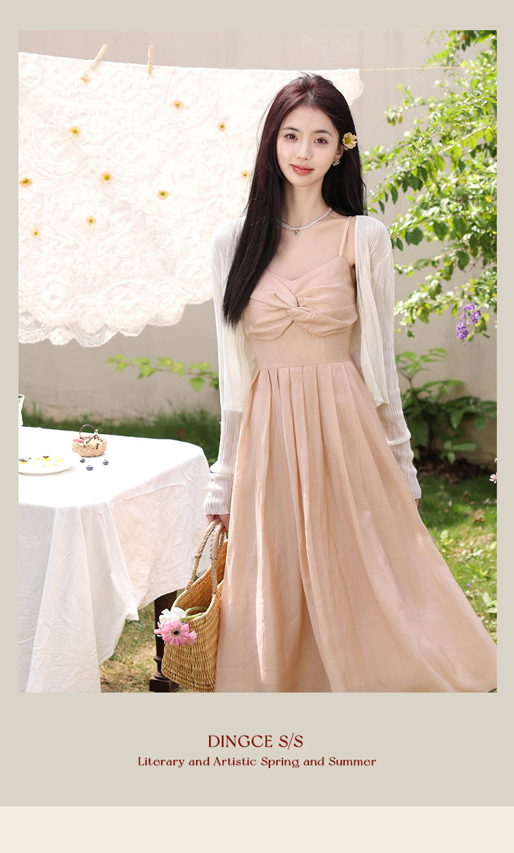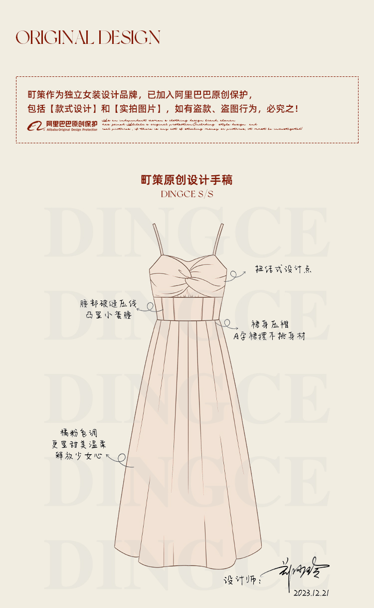 鹿向南 小个子「半岛甜茶」温柔风气质连衣裙女夏季法式吊带裙DC01005