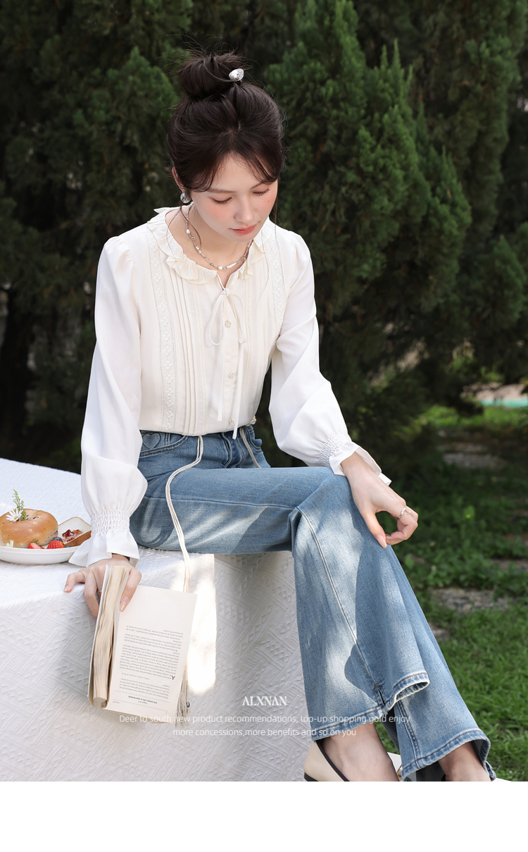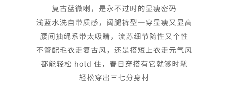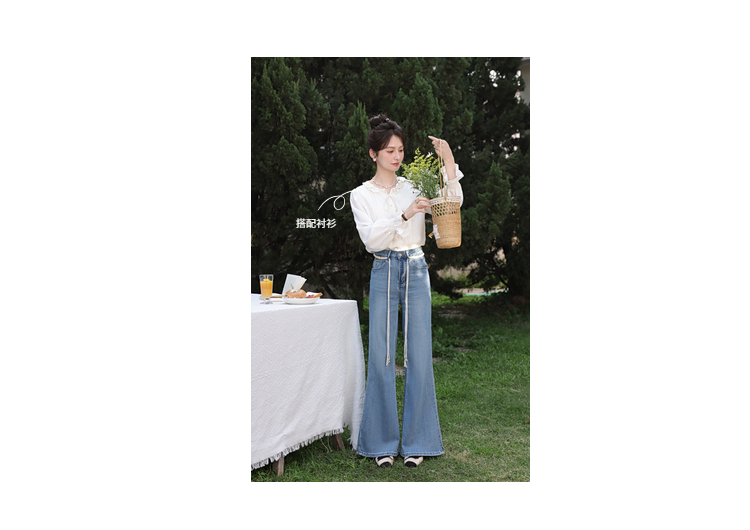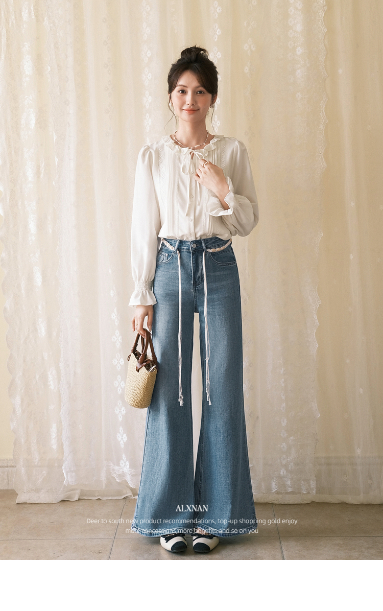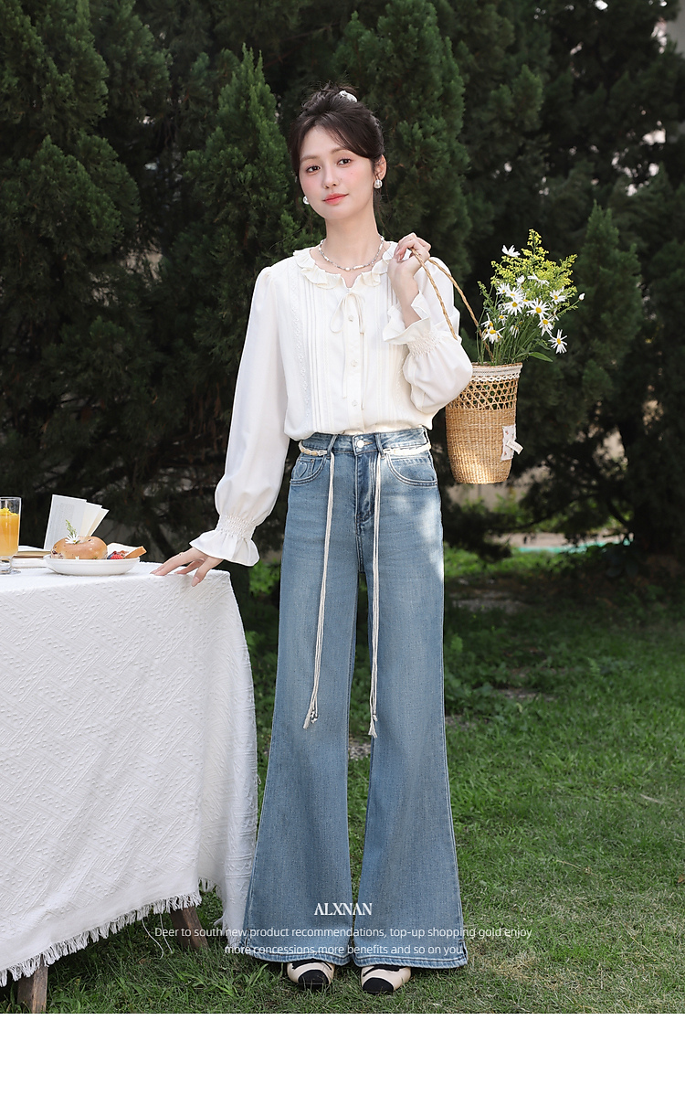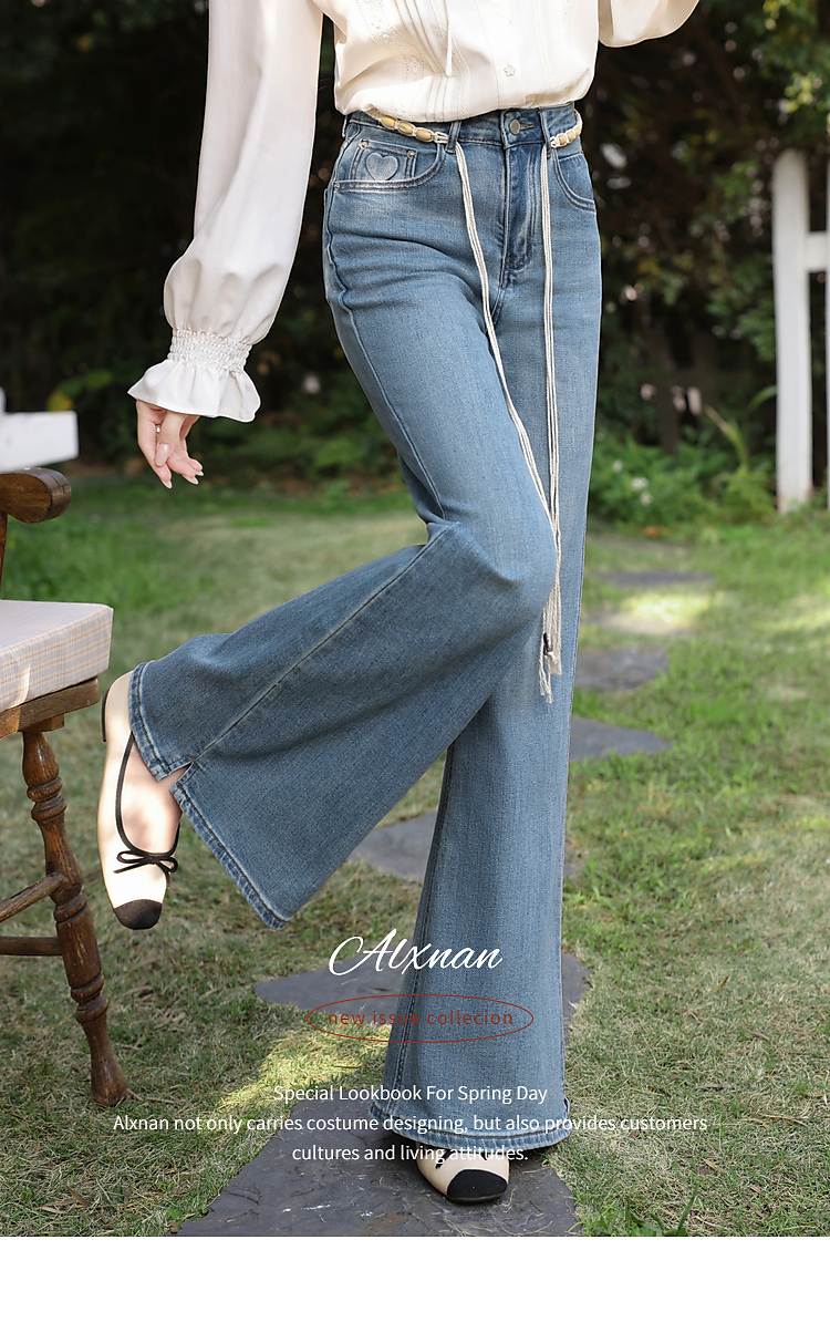 鹿向南「星落花海」蓝色牛仔裤女春季新款高腰宽松拖地长款裤子