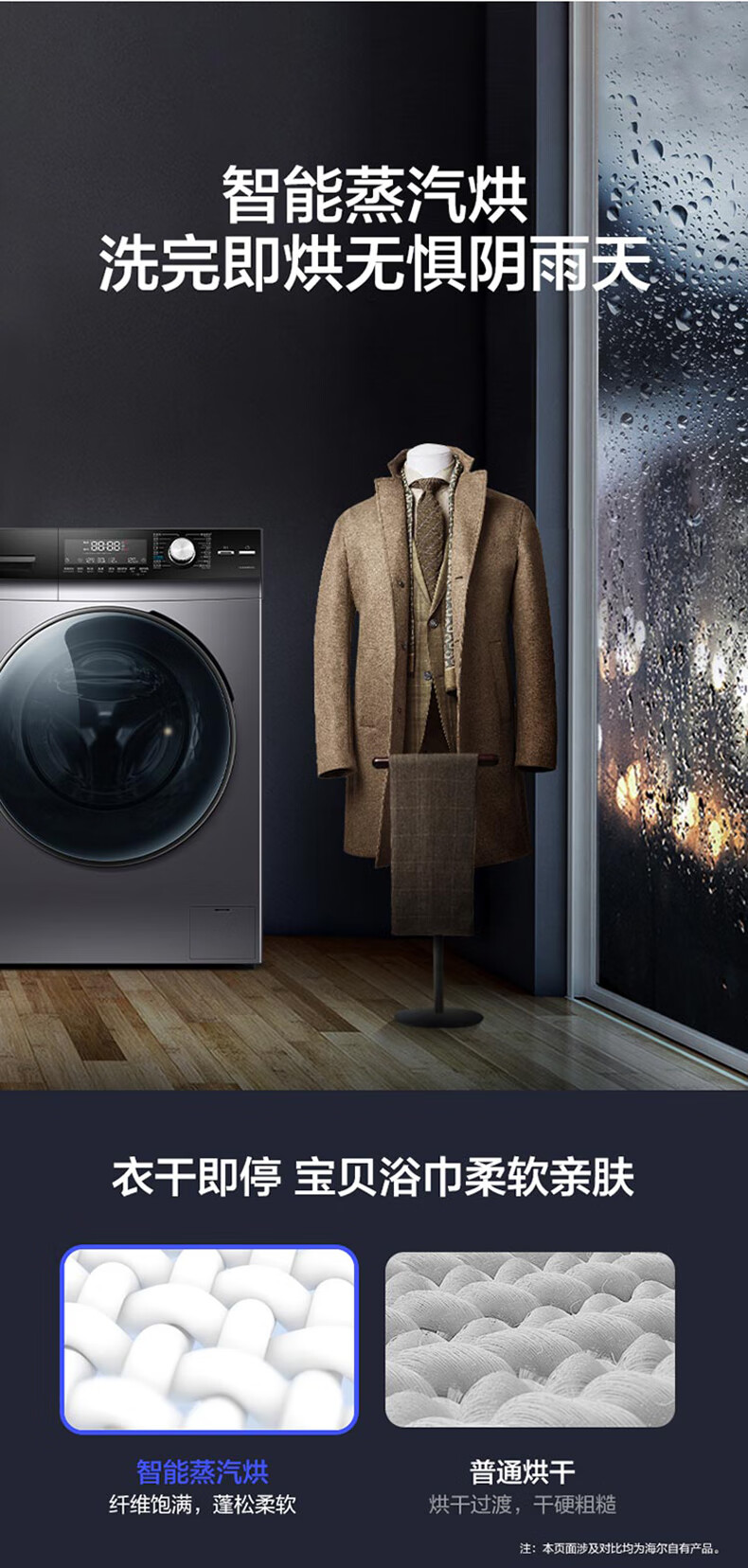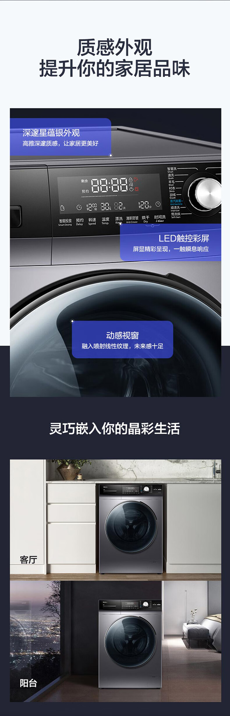 海尔洗衣机全自动家用直驱变频10公斤滚筒洗烘一体机智能投放微蒸汽空气洗香薰洗护 EG100HPRO7S