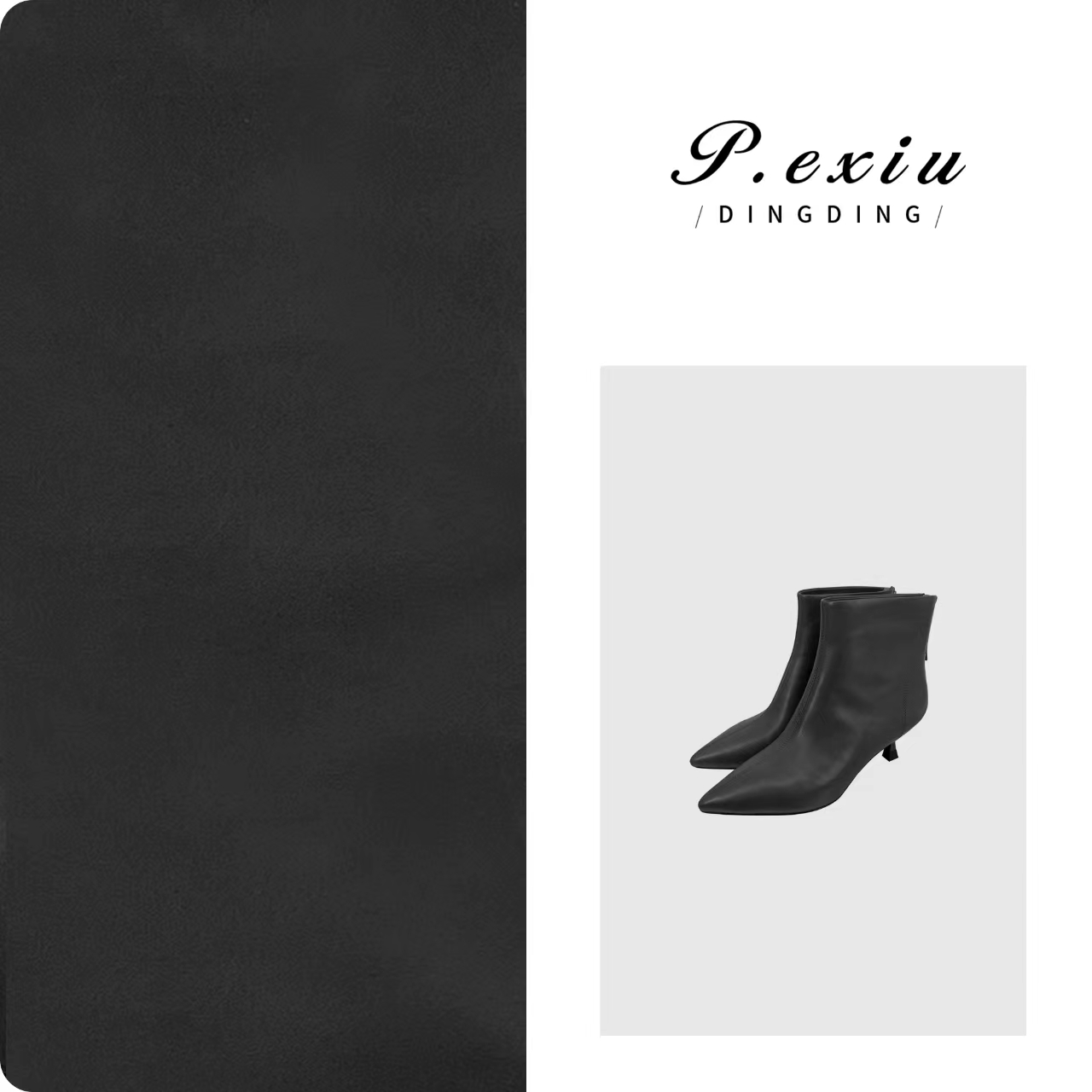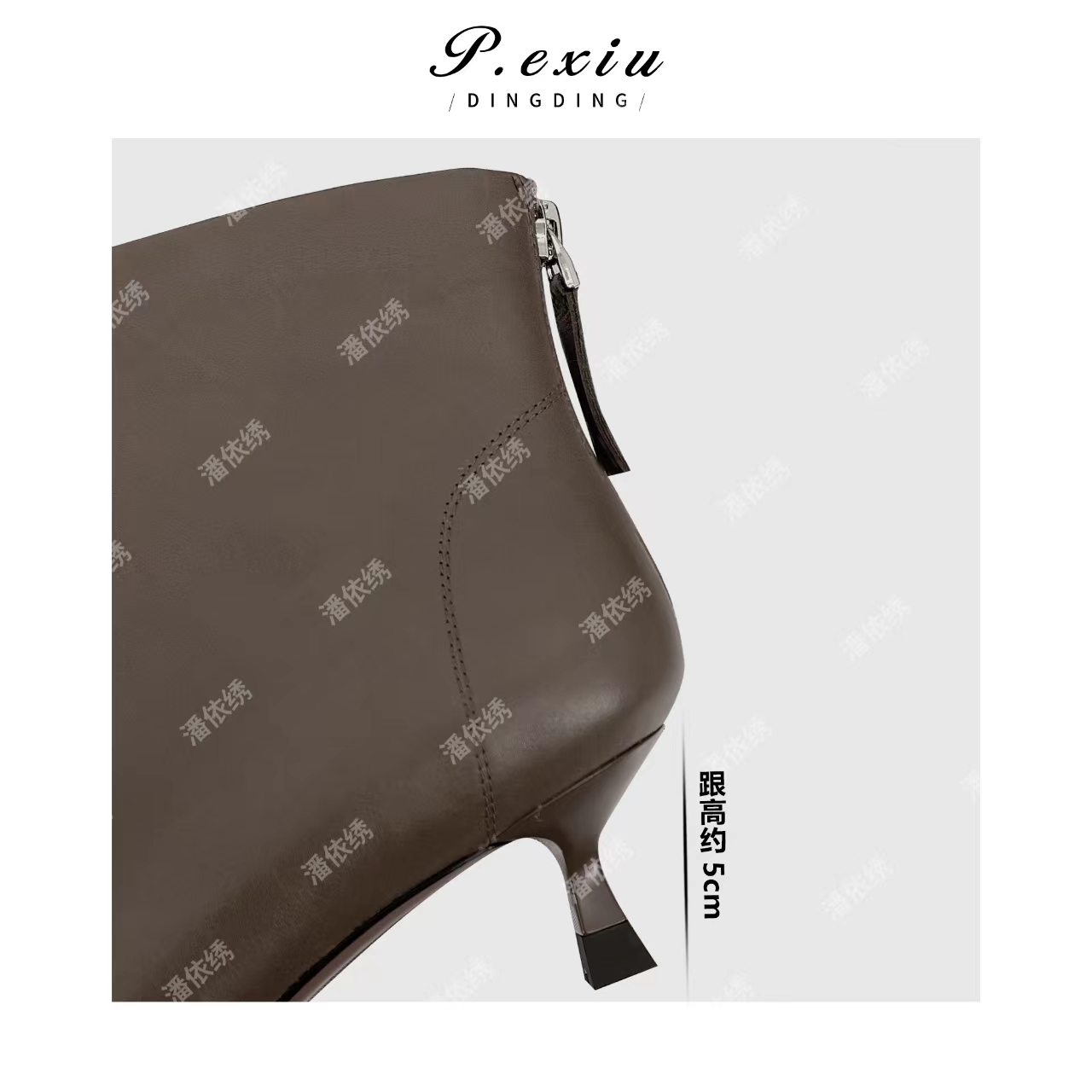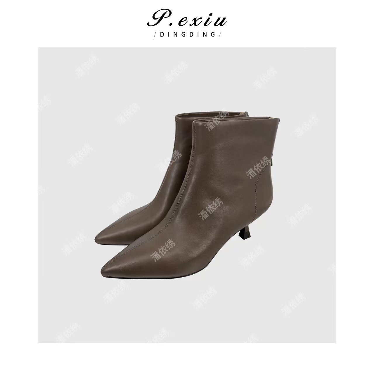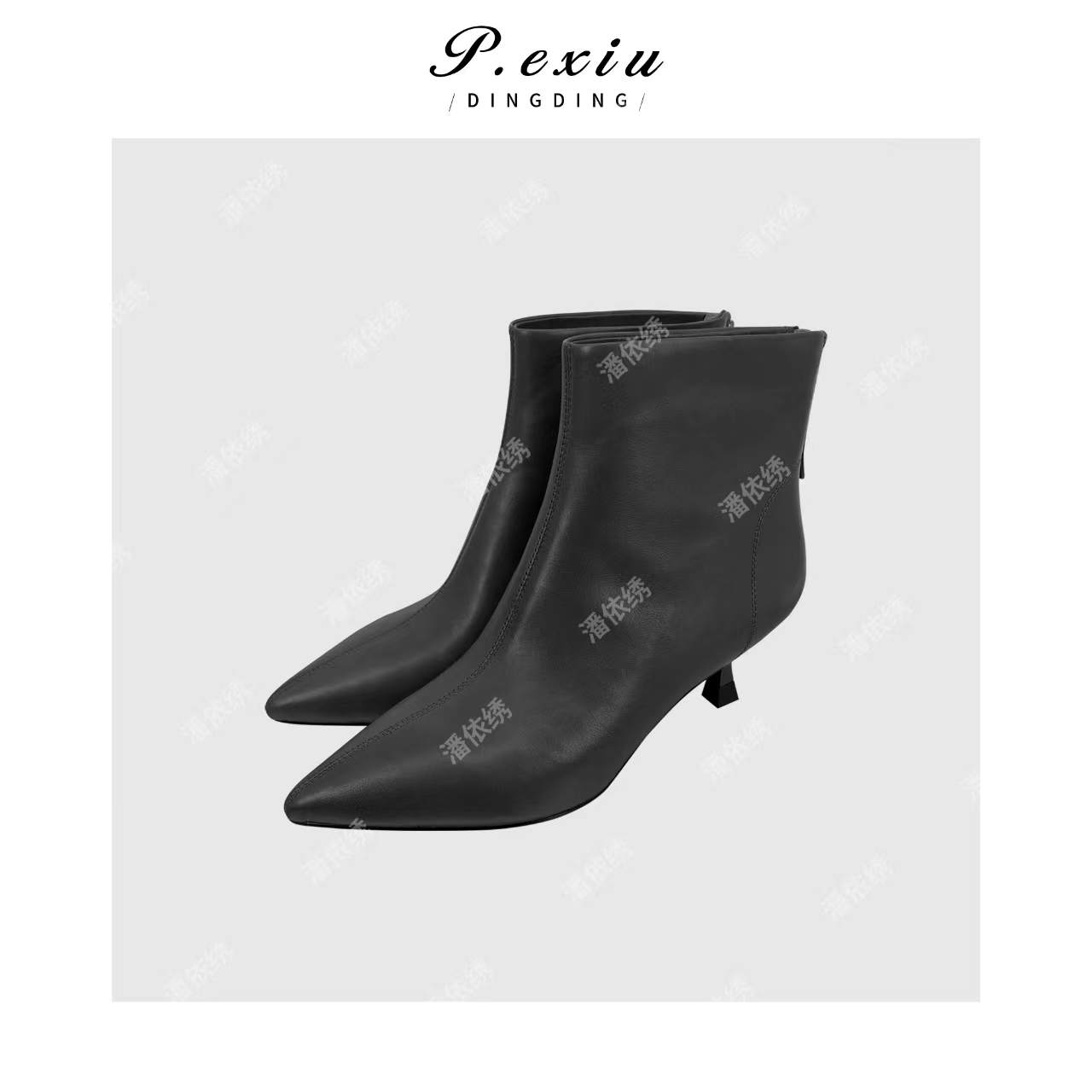 04-5潘依绣丁丁宠粉【胎小牛皮】细跟尖头短靴气质时尚百搭女靴 DR10690