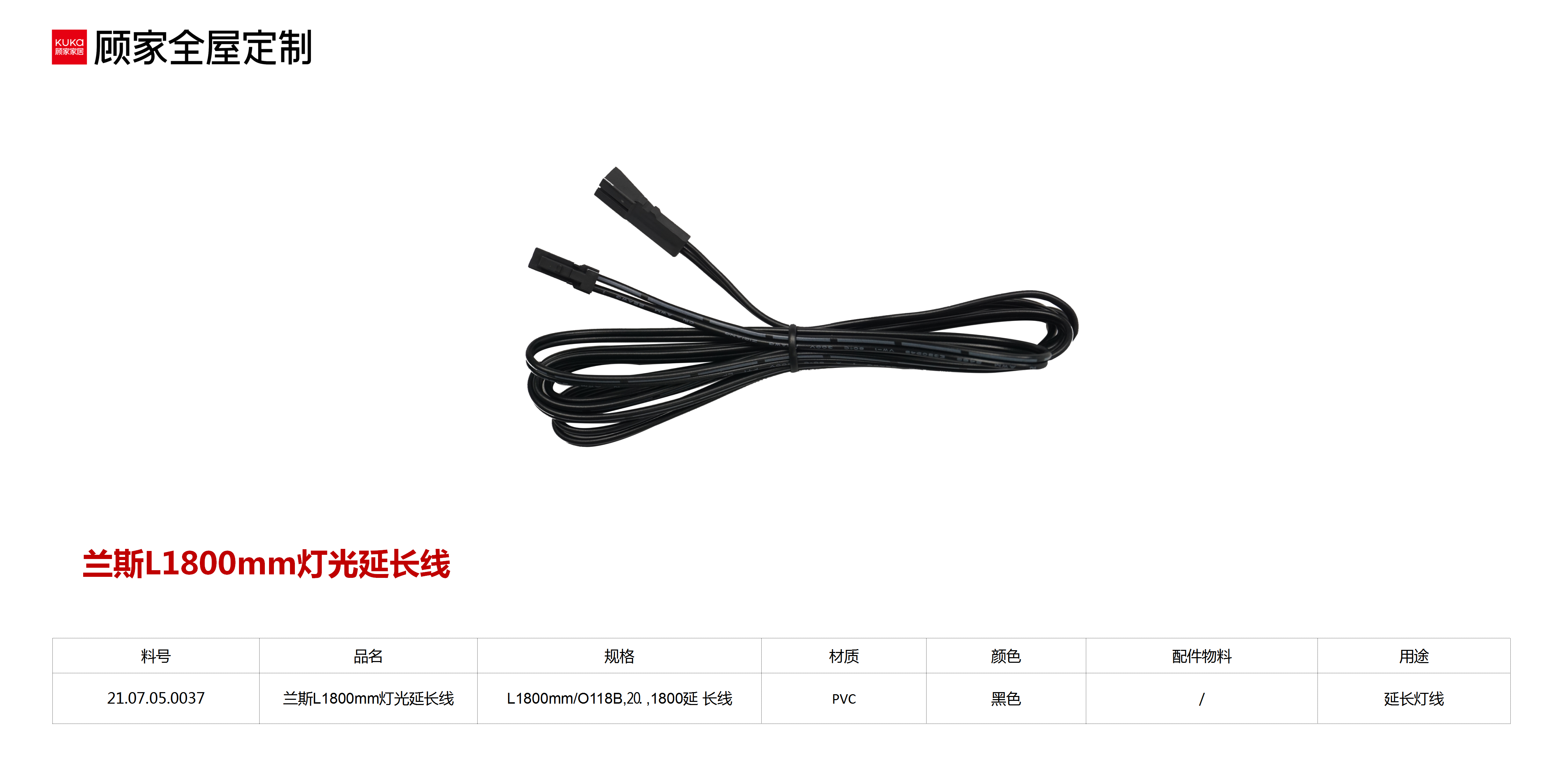 1-衣柜照明五金-2灯具配件-1-兰斯L1800mm延灯光长线