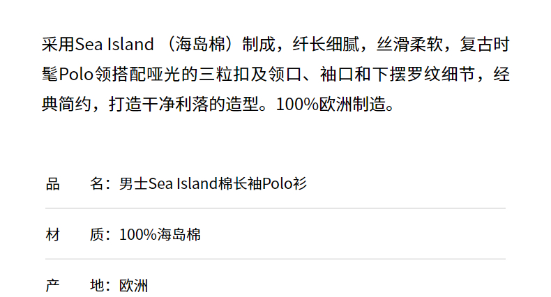 【海岛棉系列】SUNSPEL男士经典款Sea Island海岛棉长袖Polo衫