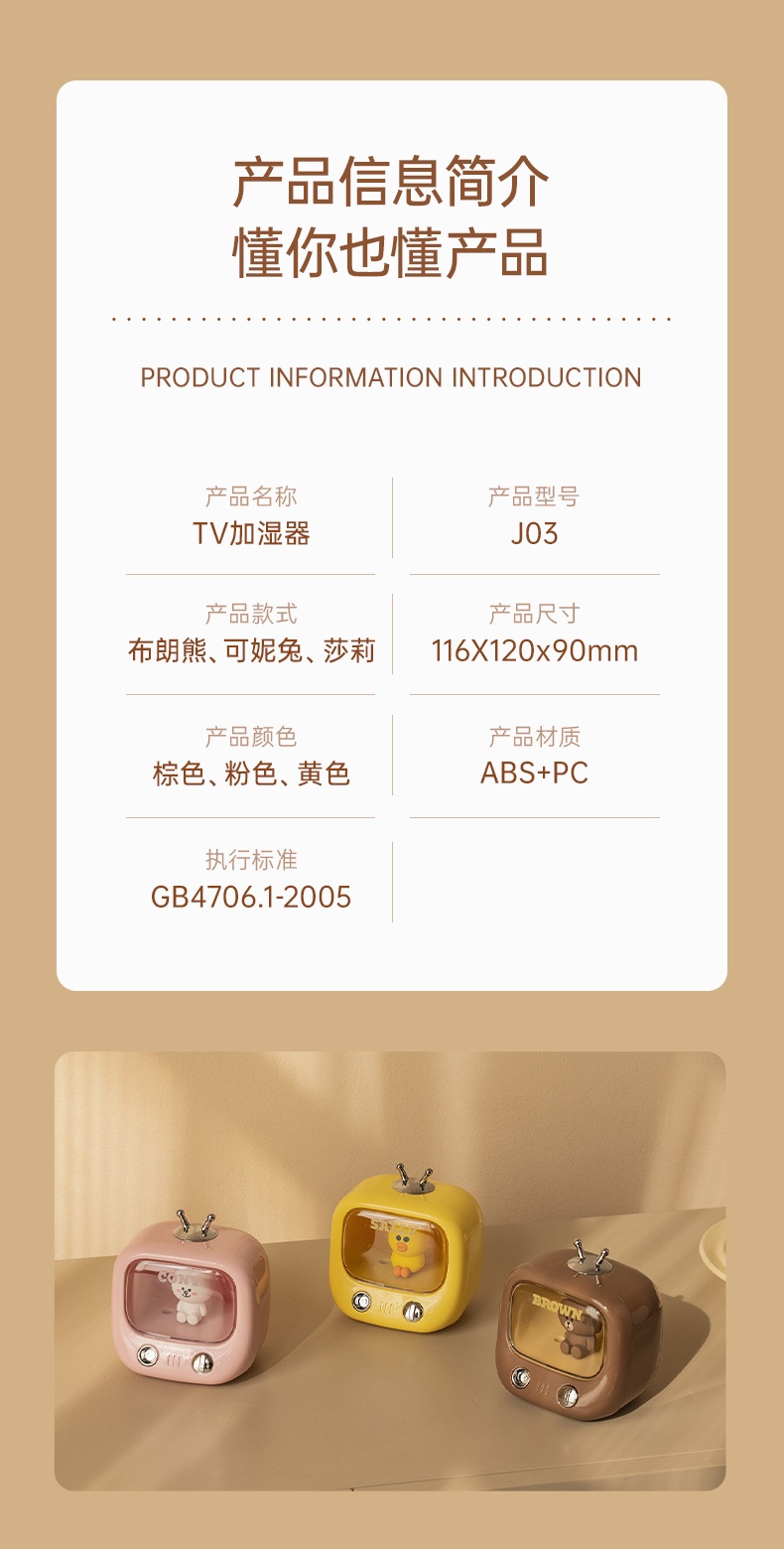 Line Friends 桌面TV加湿器 带夜灯功能 静音喷雾 J03