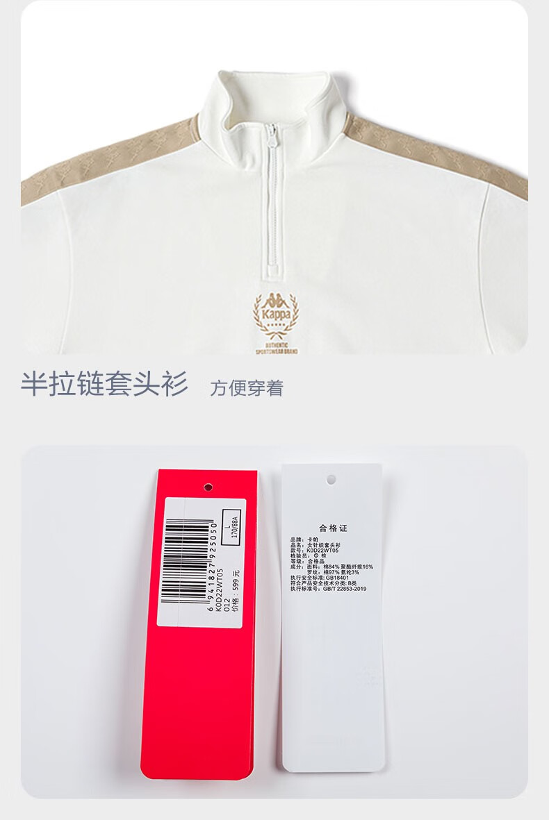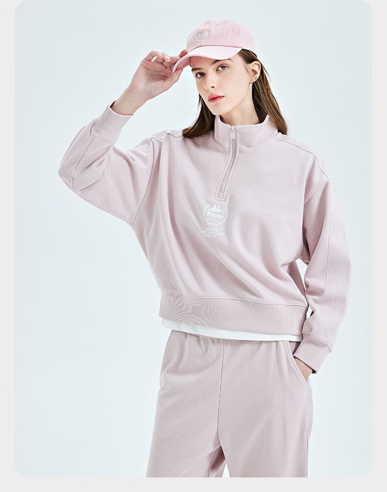Kappa卡帕串标套头衫2023新款女春短款运动卫衣半拉链立领外套K0D22WT05
