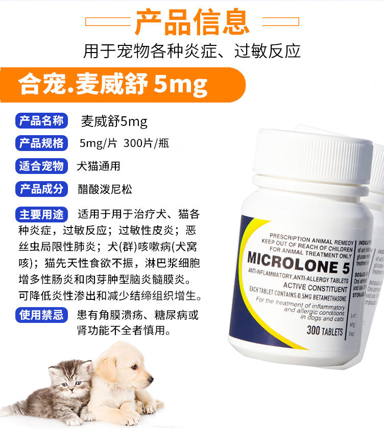 合宠醋酸泼尼松猫狗食物过敏性皮炎鼻溶血性贫血神经关节炎斑狼疮