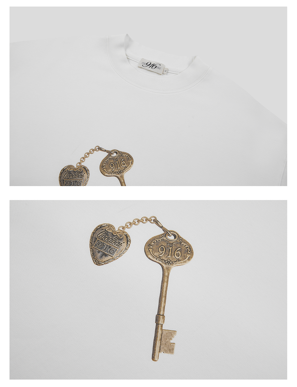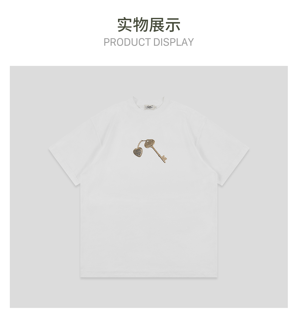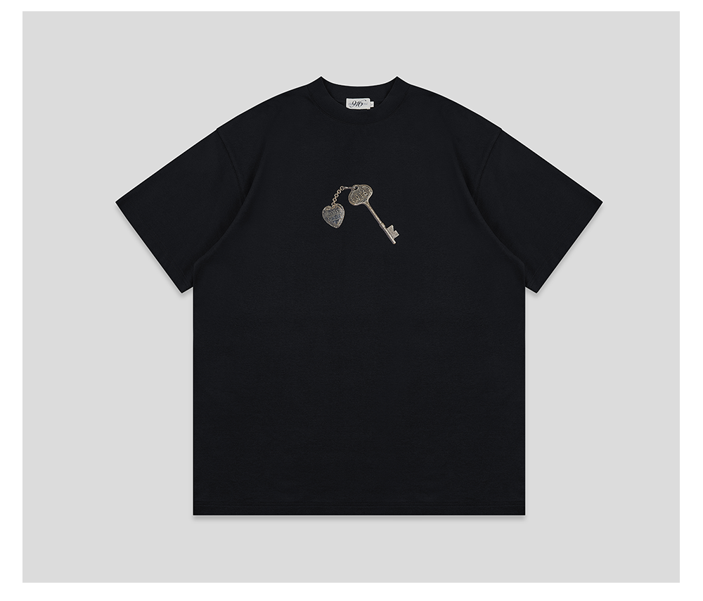 GOODBAI 916 钥匙印花纯色圆领oversize短袖T恤