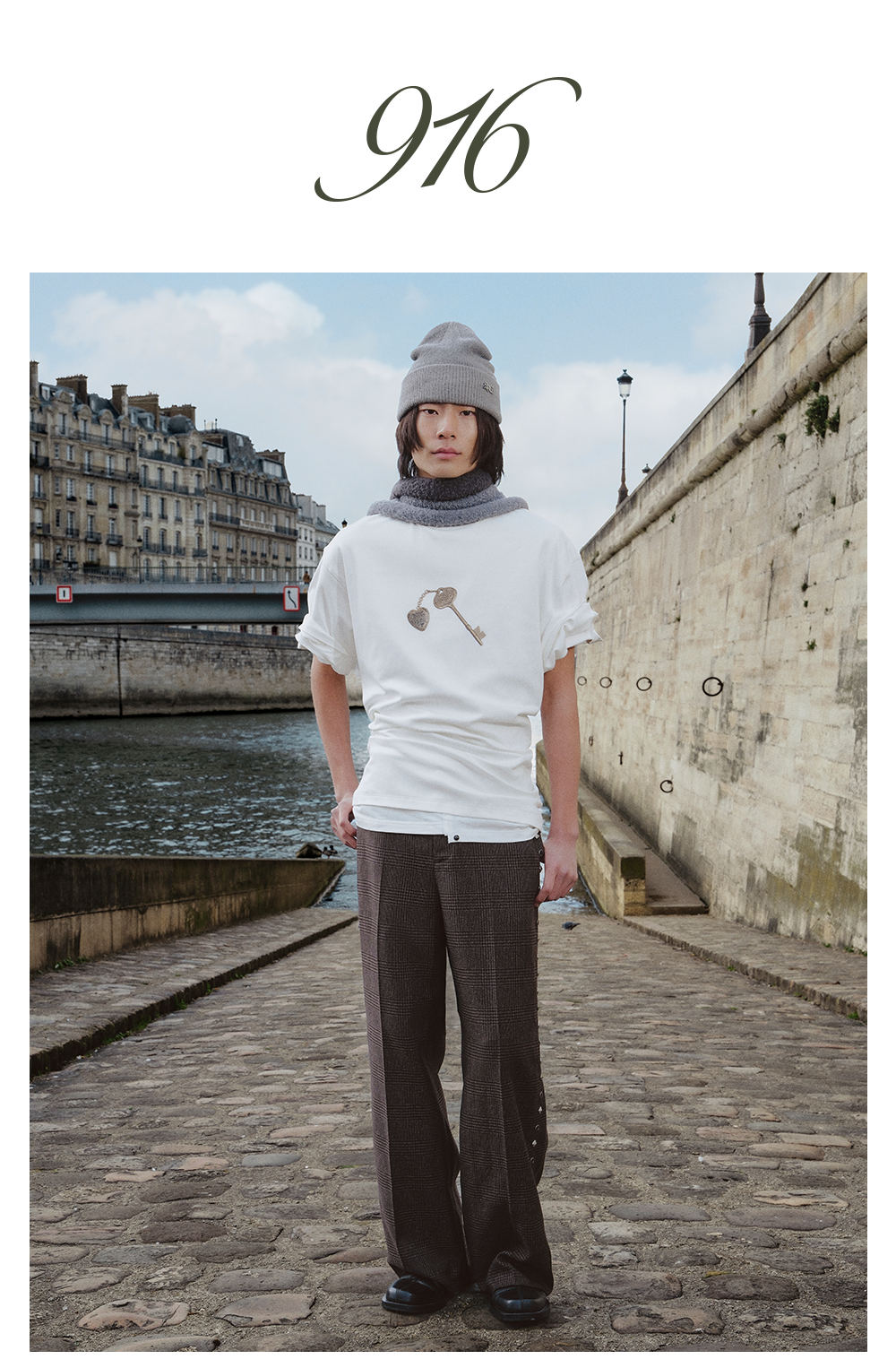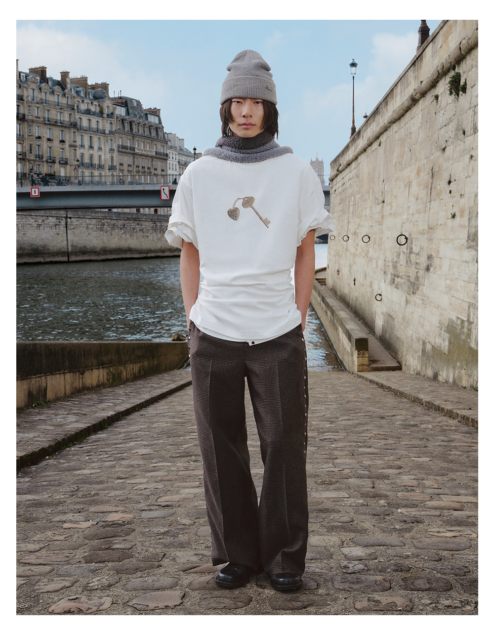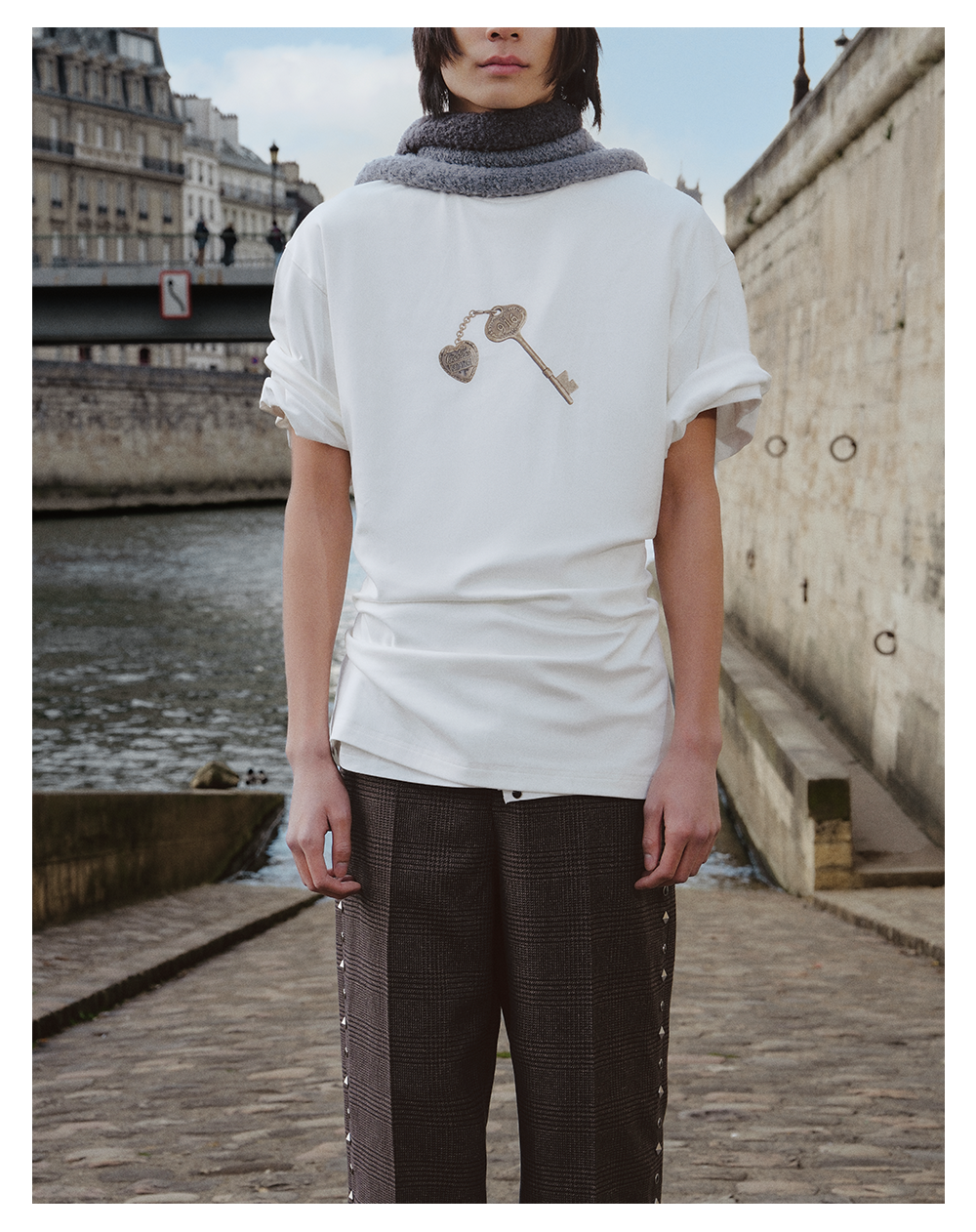 GOODBAI 916 钥匙印花纯色圆领oversize短袖T恤
