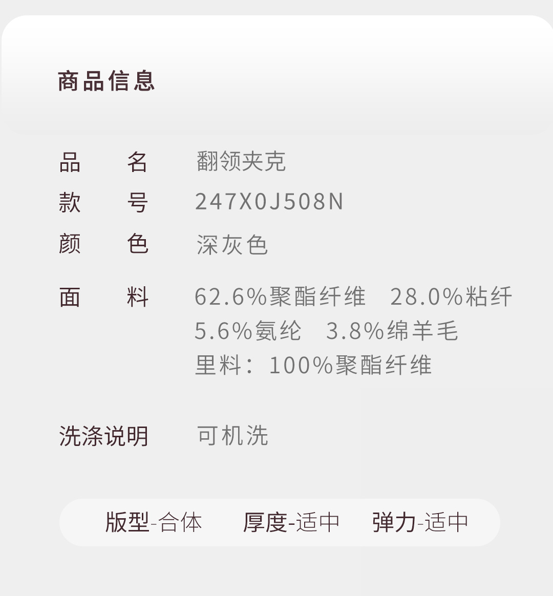 【风尚六号】可机洗绵羊毛耐磨翻领行政夹克外套247X0J508N