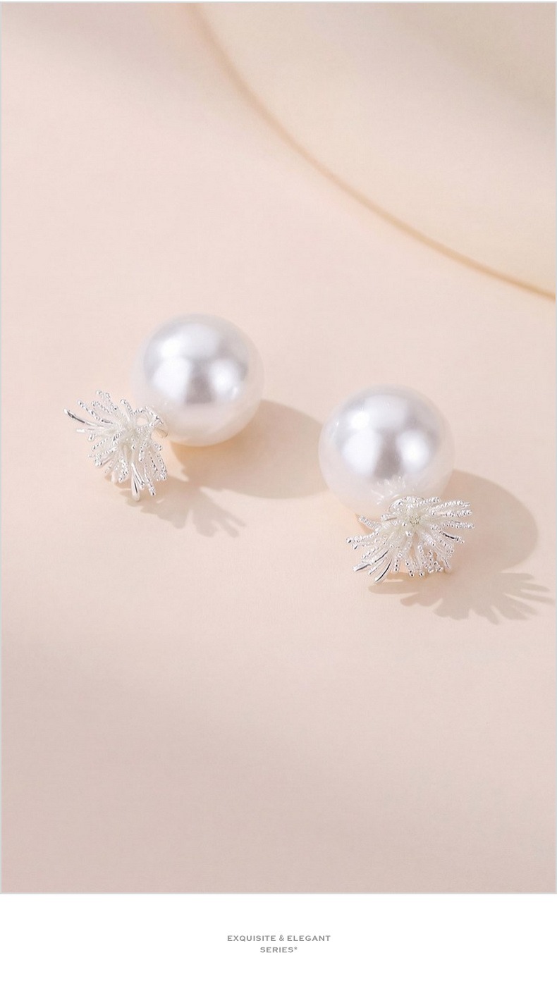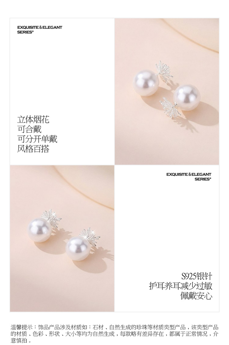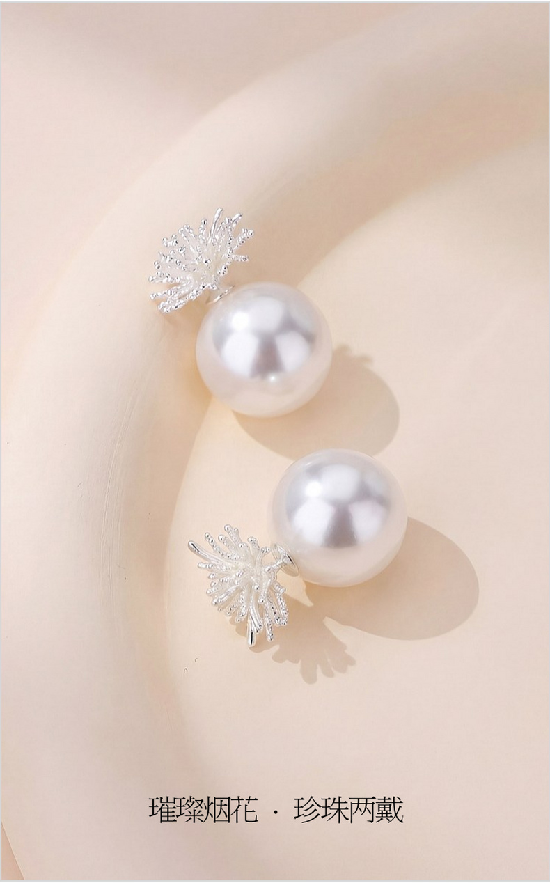 三彩2026新款立体烟花蒲公英珍珠耳钉S925银针清冷轻奢通勤女
