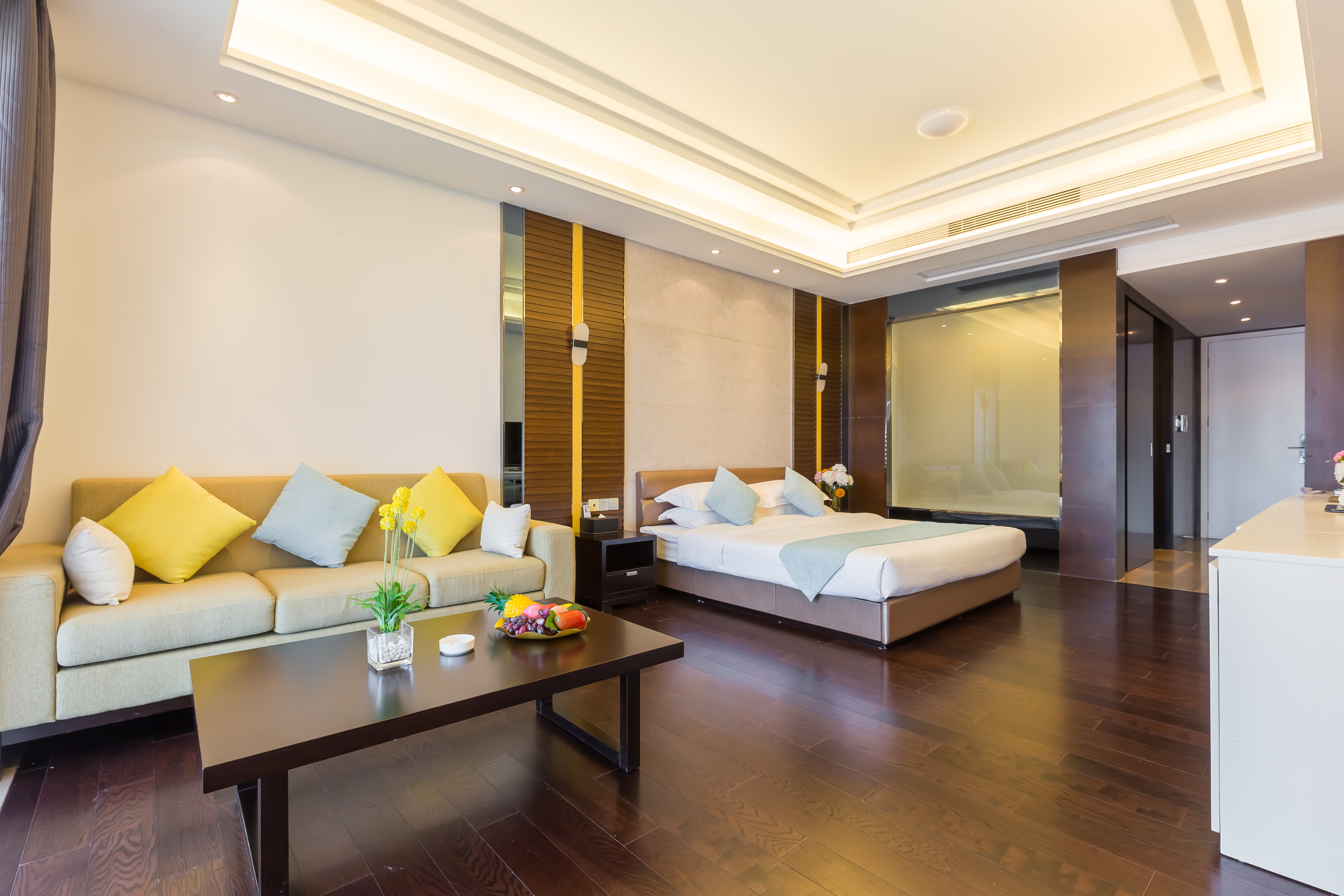 公寓以现代简约风格为主,房间布置温馨舒适。每个房间都配备了厨房、冰箱、电磁炉、洗衣机、热水器、电视、独立卫生间等基本设施,另外卫生间干湿分离配有浴缸。部分房间还提供阳台,可以欣赏到美丽的海景。酒店的设计风格简洁大方,营造出宁静舒适的住宿环境。此外,酒店还提供24小时热水、洗漱用品等贴心服务,让您感受到家的温暖。