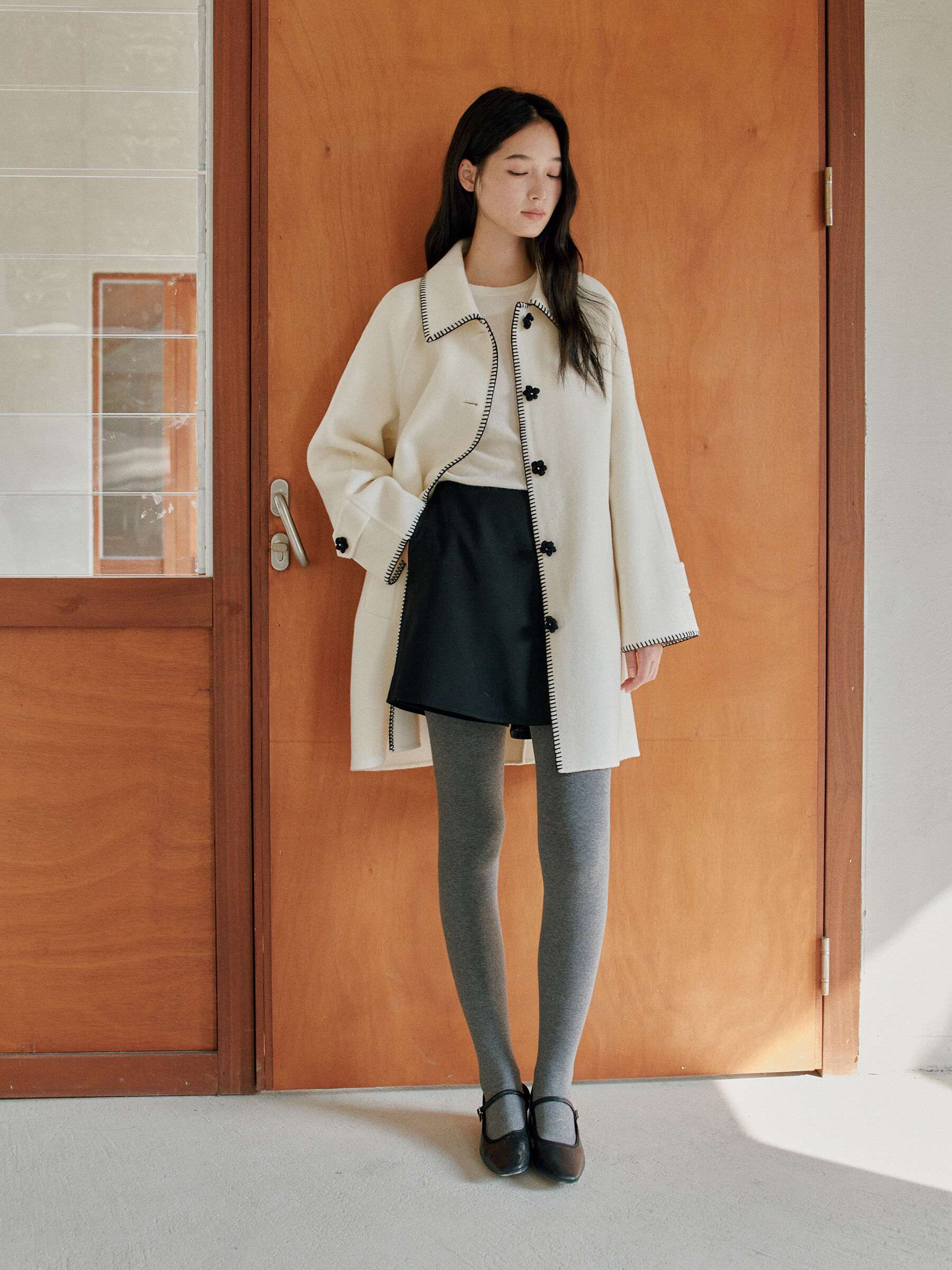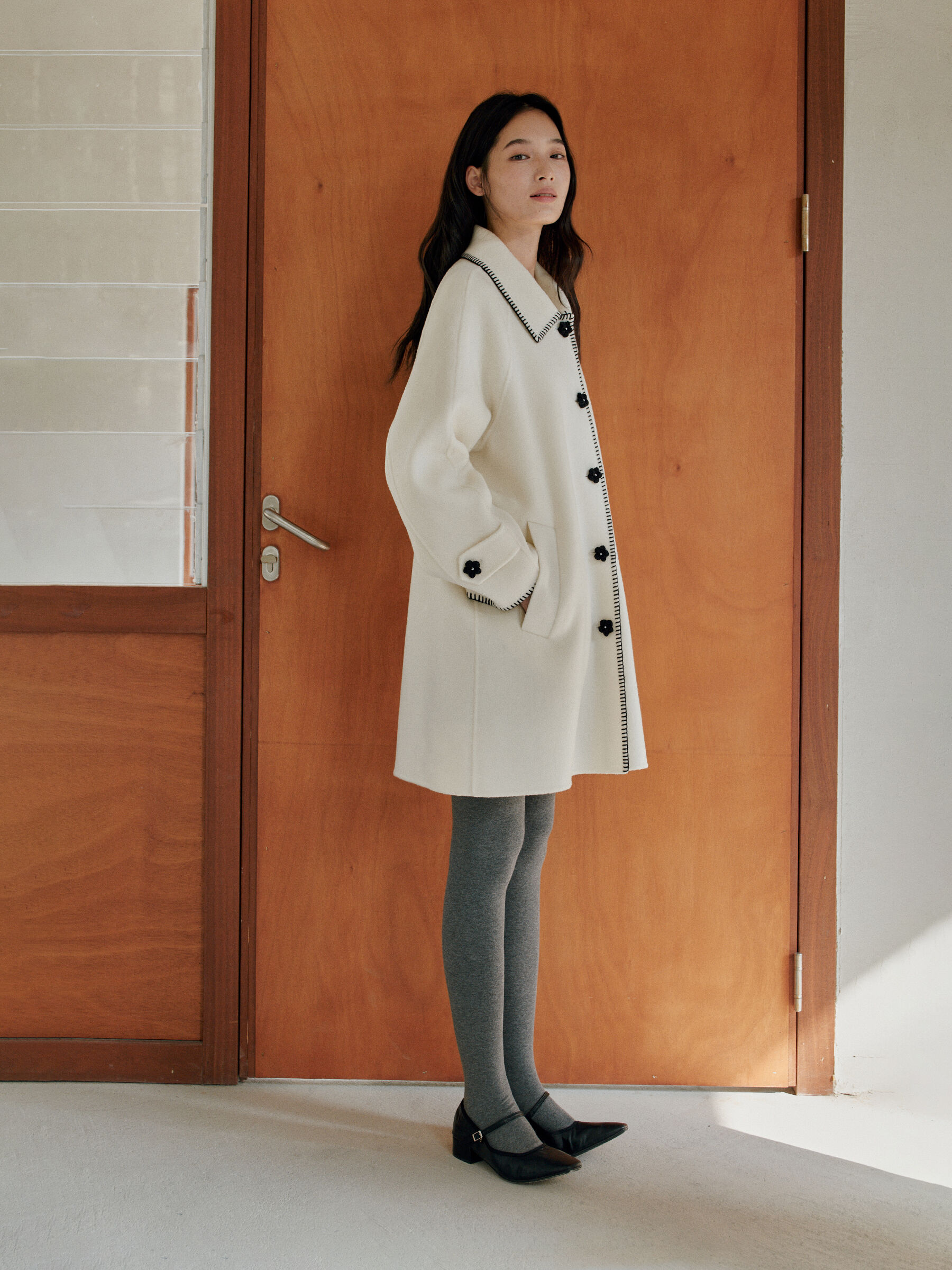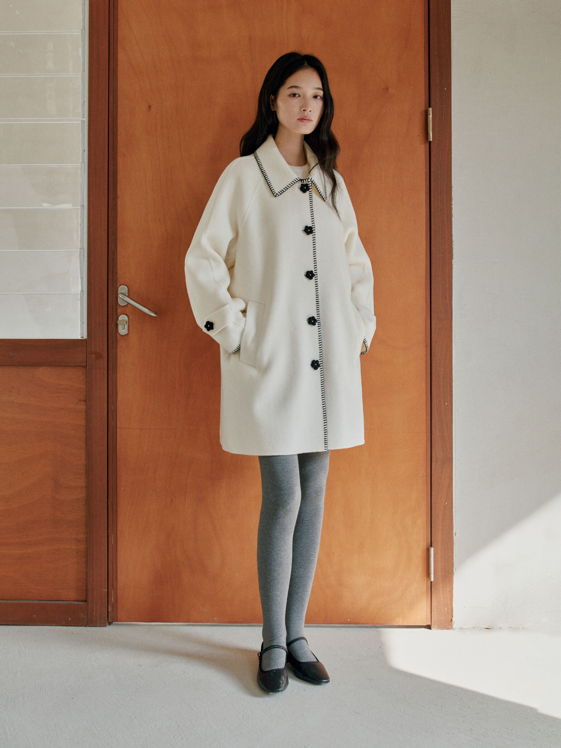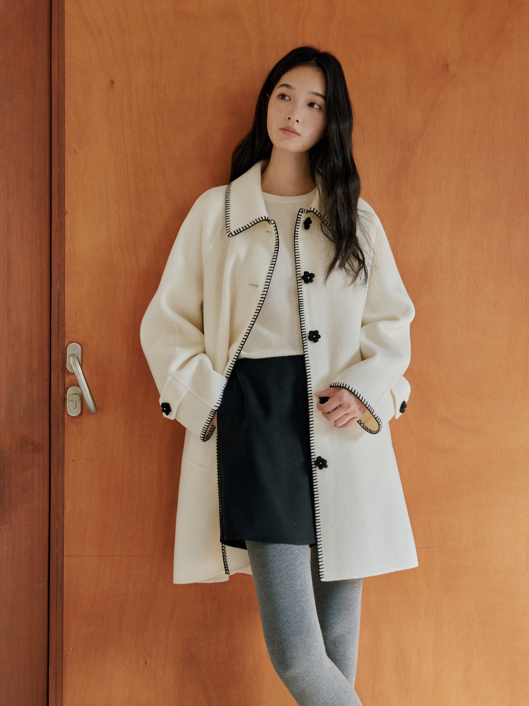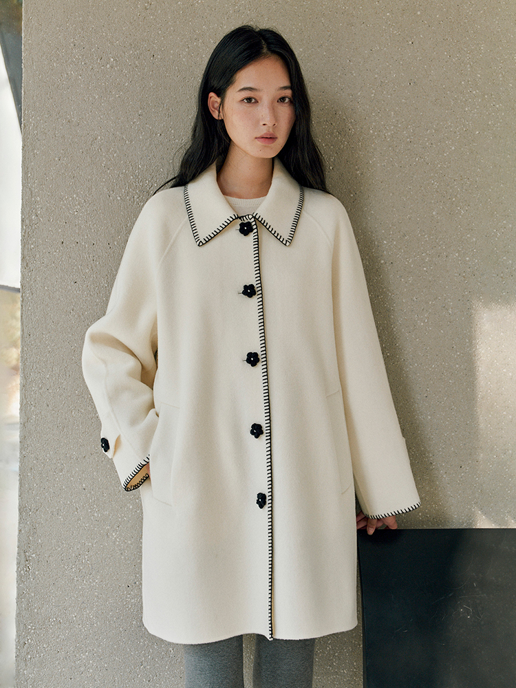 ForPoem 25/FW 原创设计100羊毛花朵扣子贝壳绣双面呢大衣外套