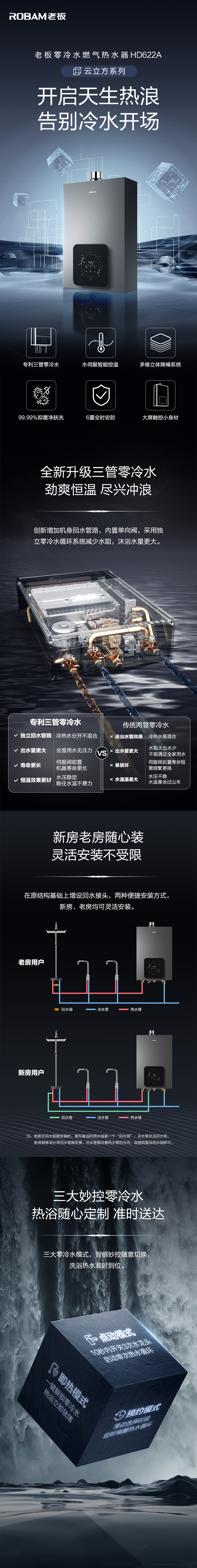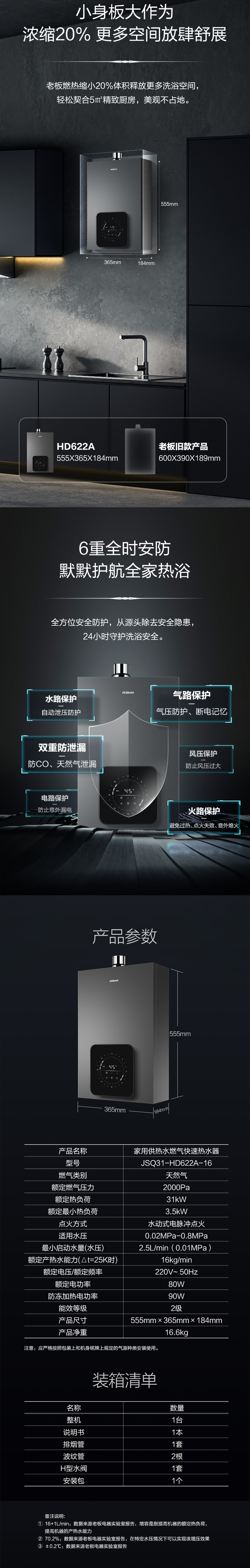 老板旗舰店622A-16L燃气天然气热水器防冻恒温变频电热水器家用