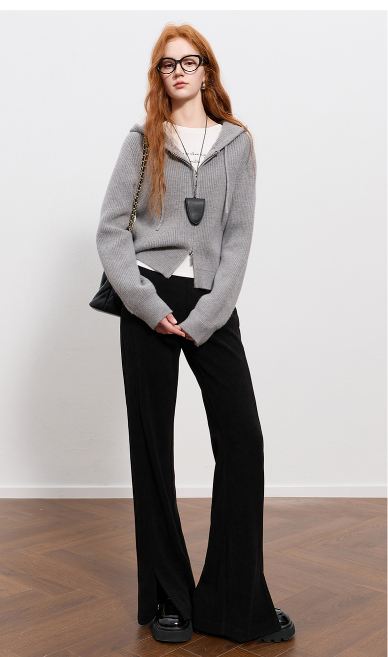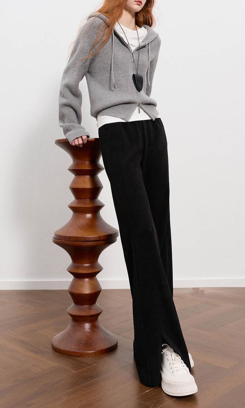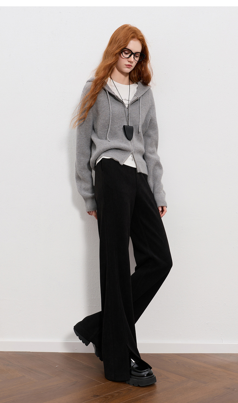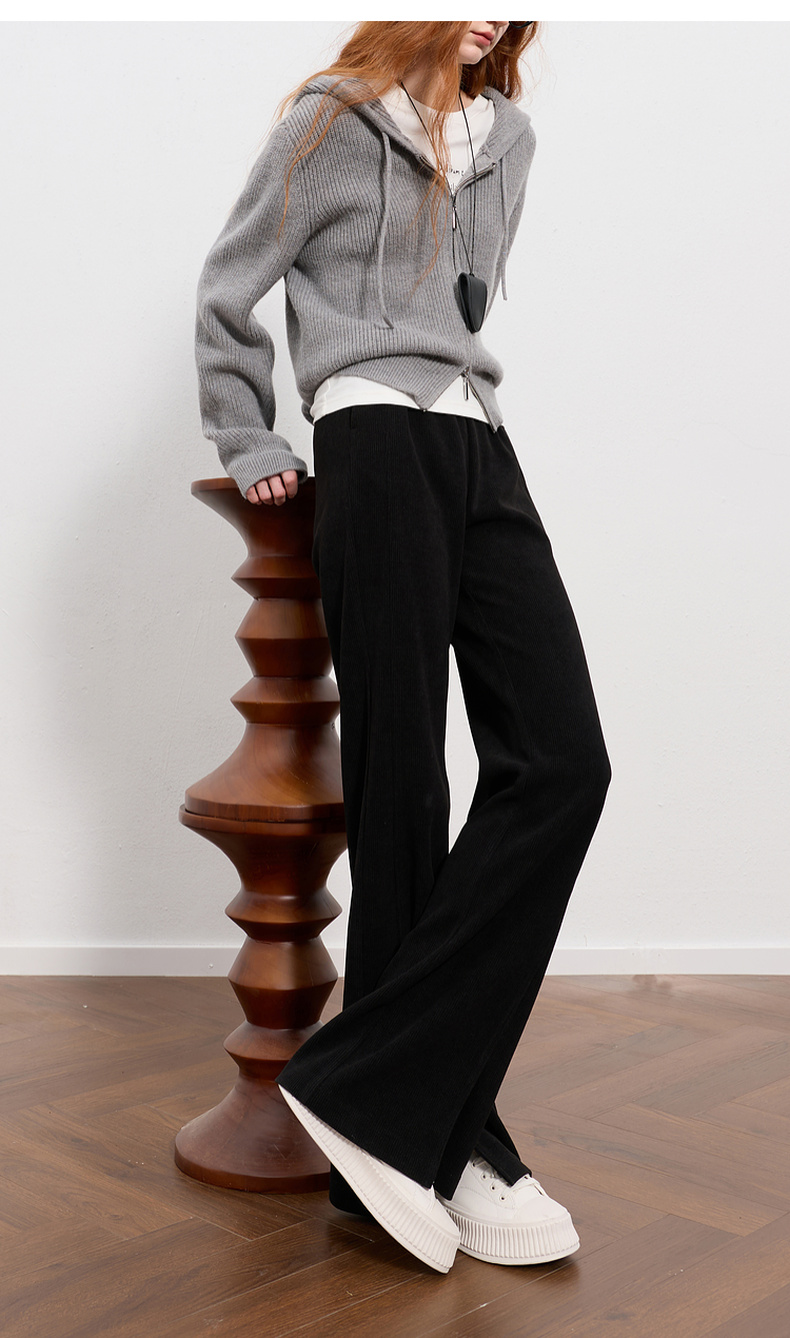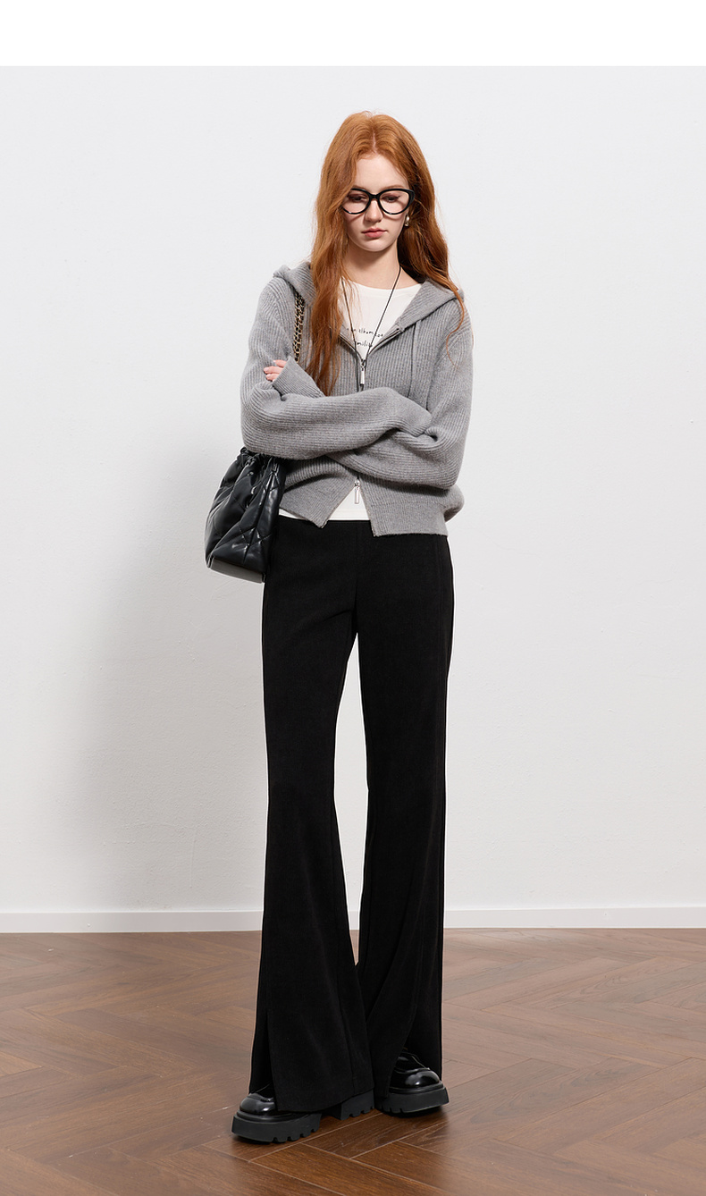 三彩2025冬季新款雪尼尔微喇裤休闲裤开叉长裤显瘦简约M
