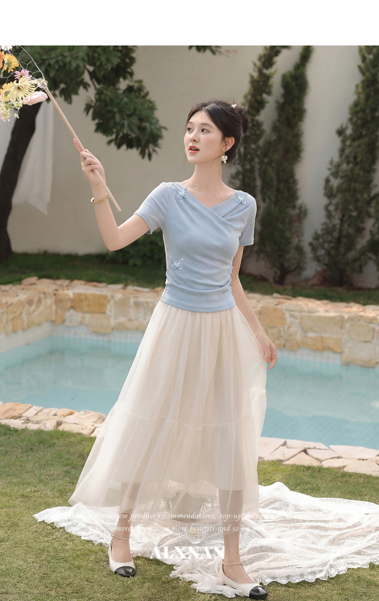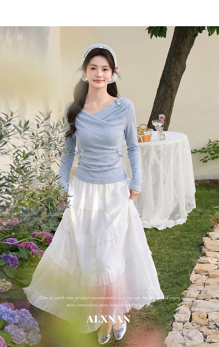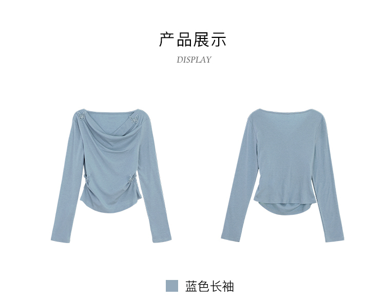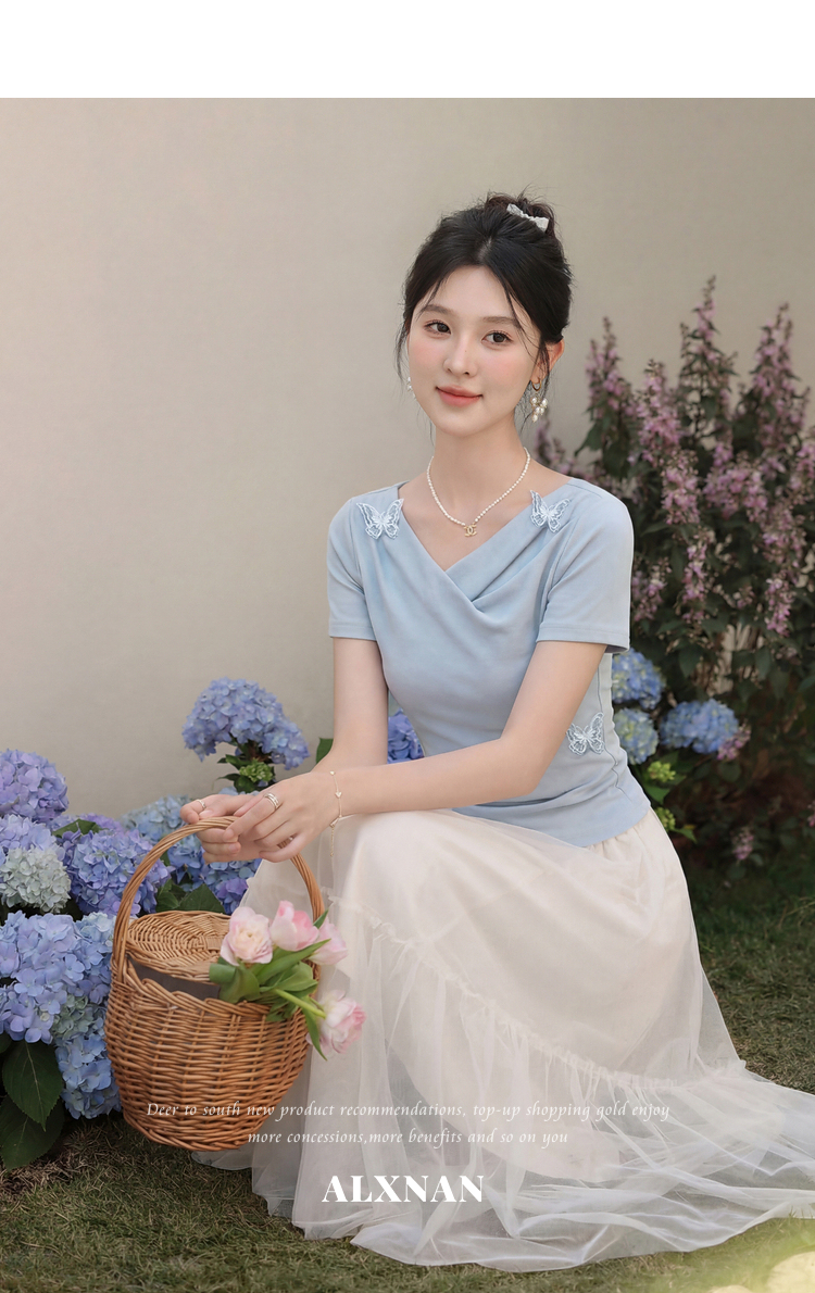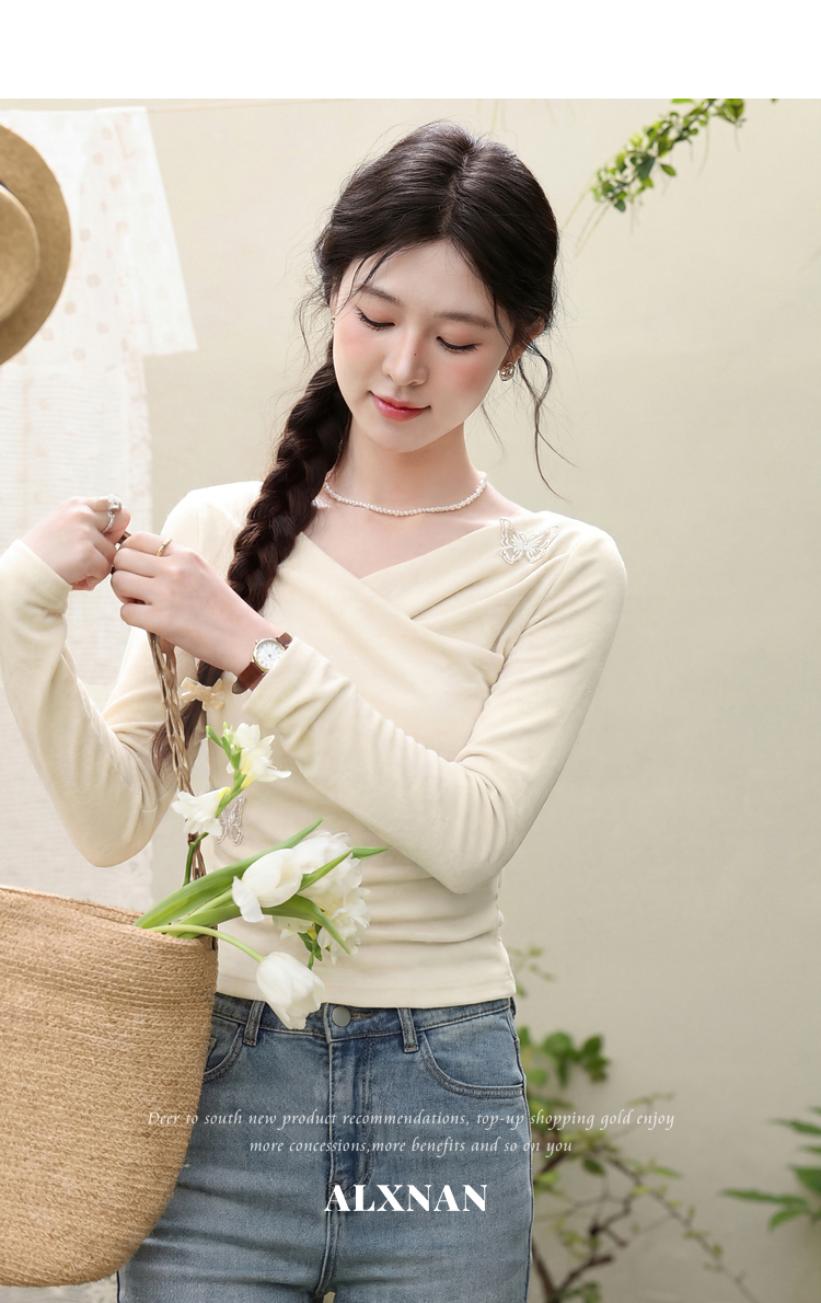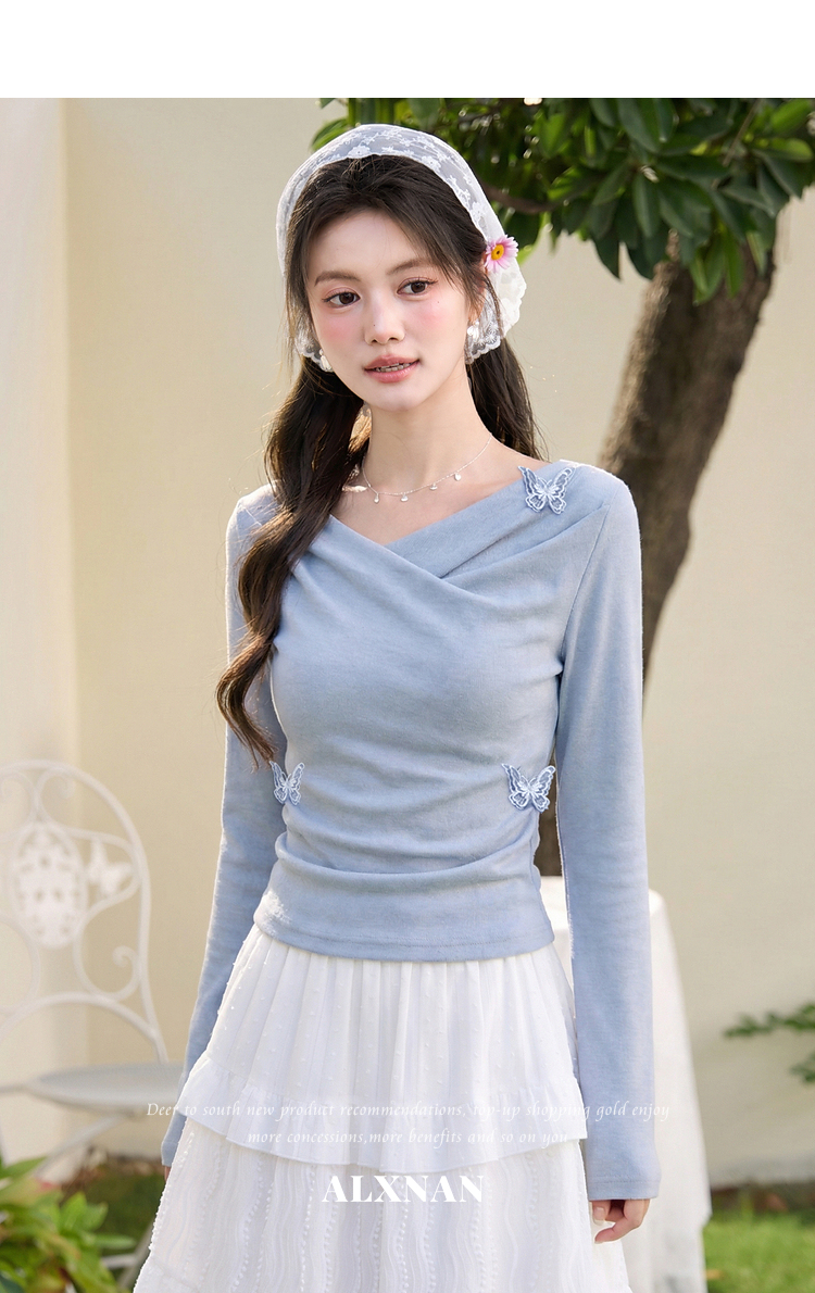 鹿向南「桃与蝶序」莱赛尔设计感粉色长袖T恤女春夏收腰修身上衣