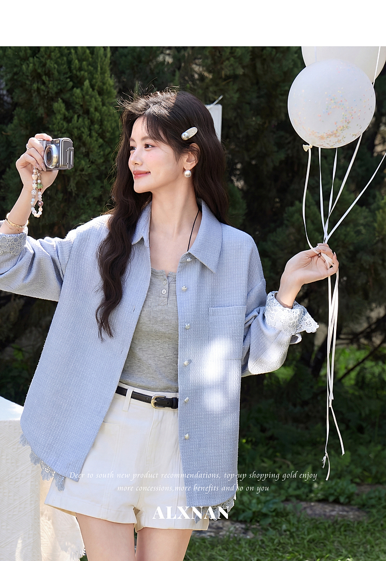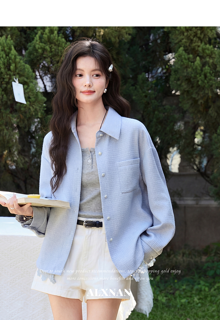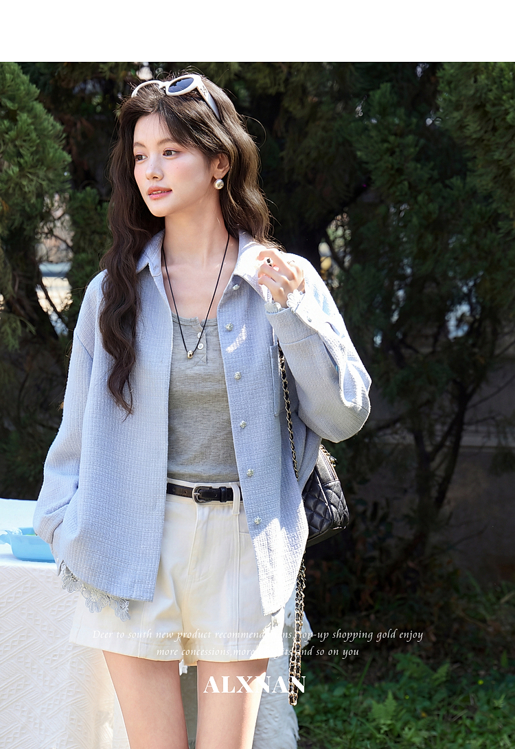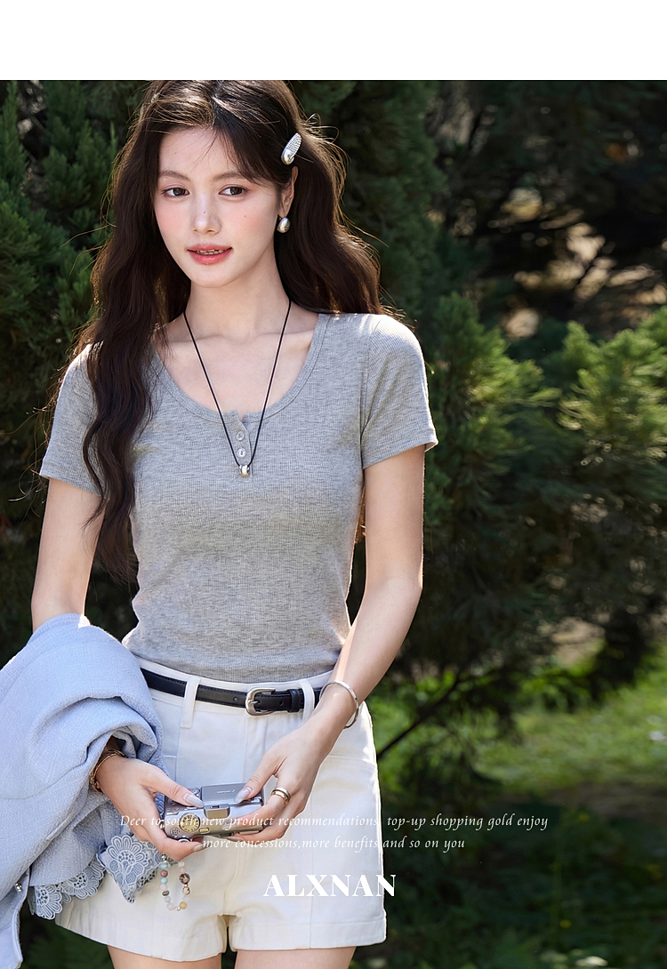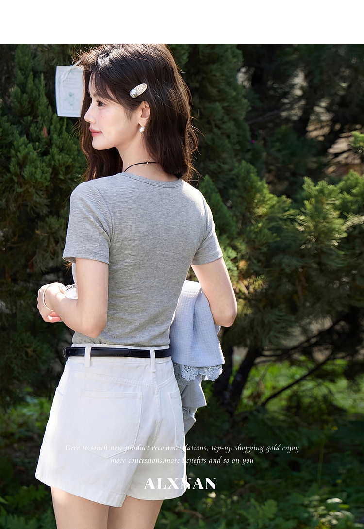 鹿向南「樱桃邦邦」灰色短袖T恤女夏新款亨利领修身显瘦正肩上衣
