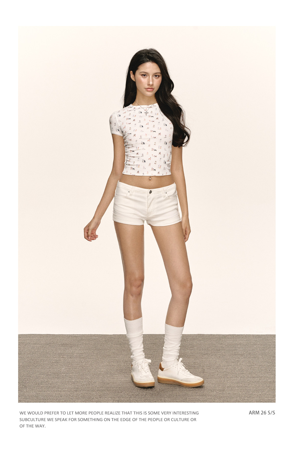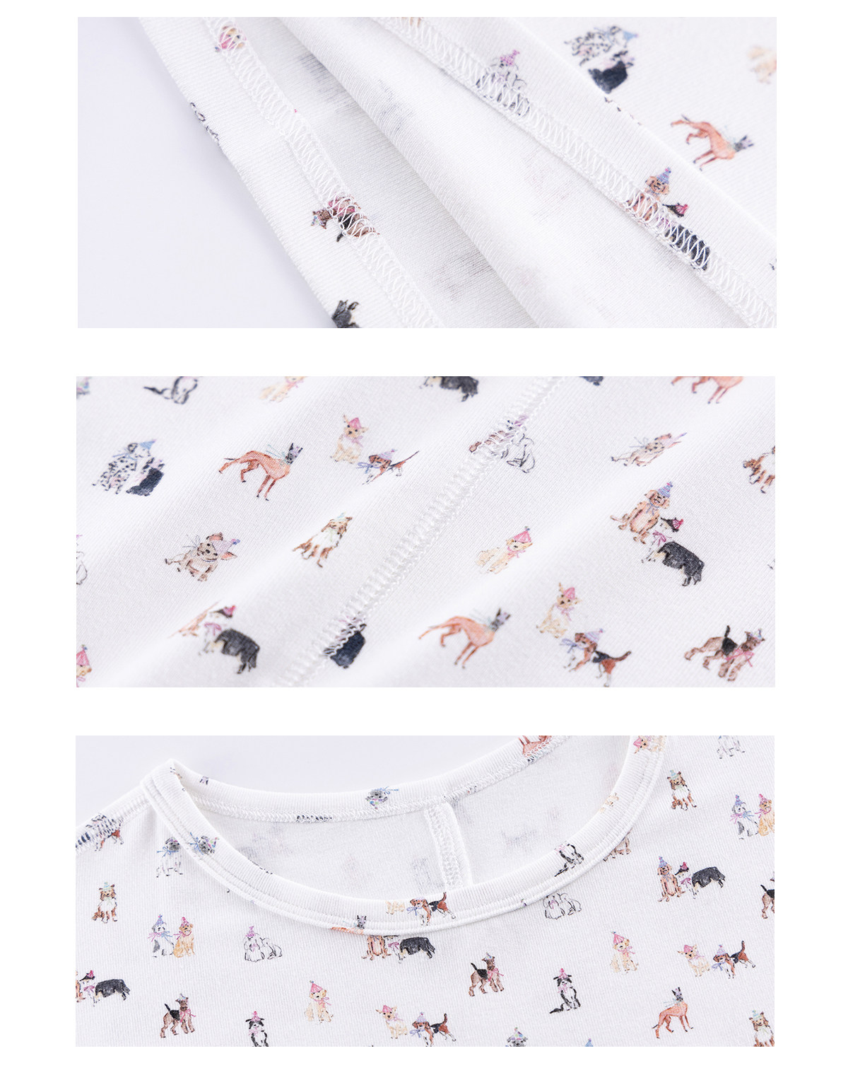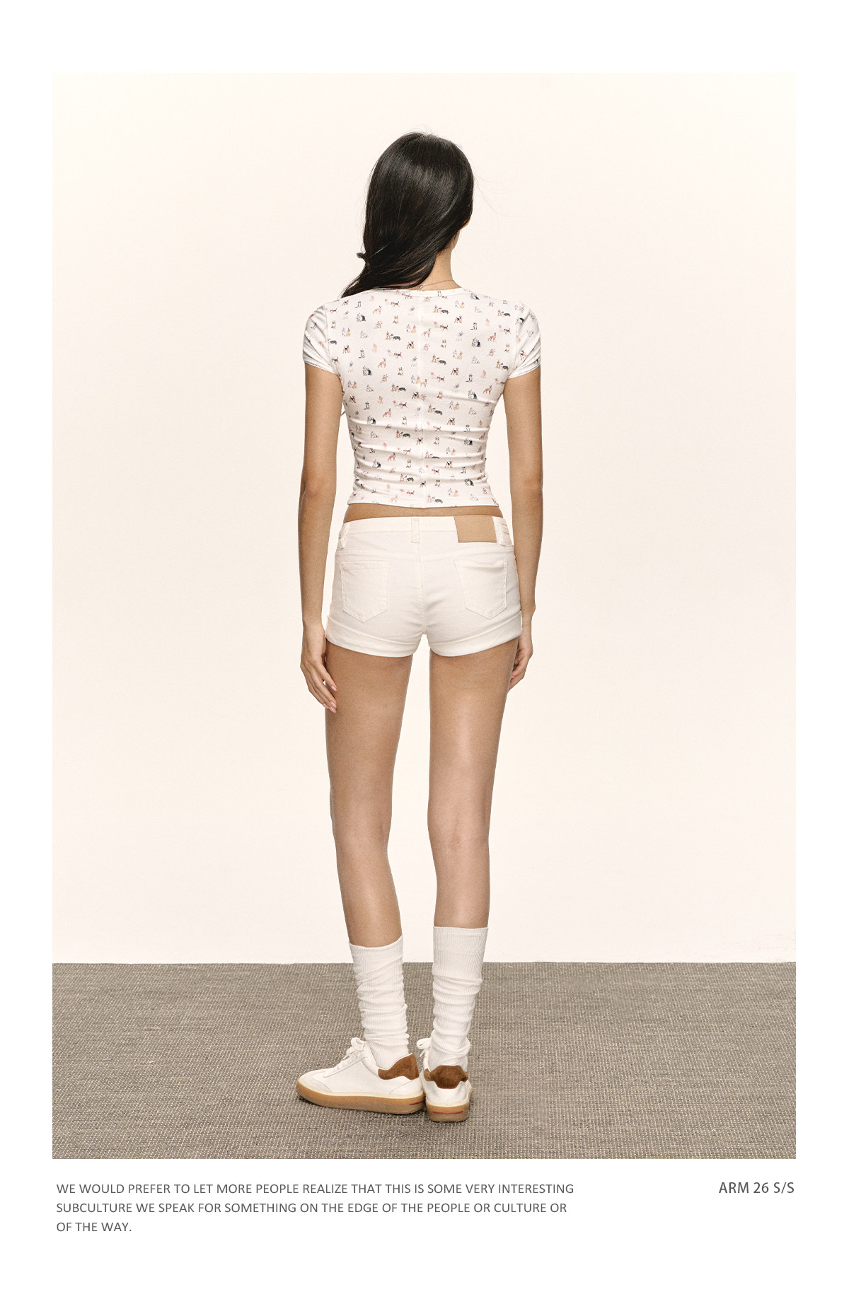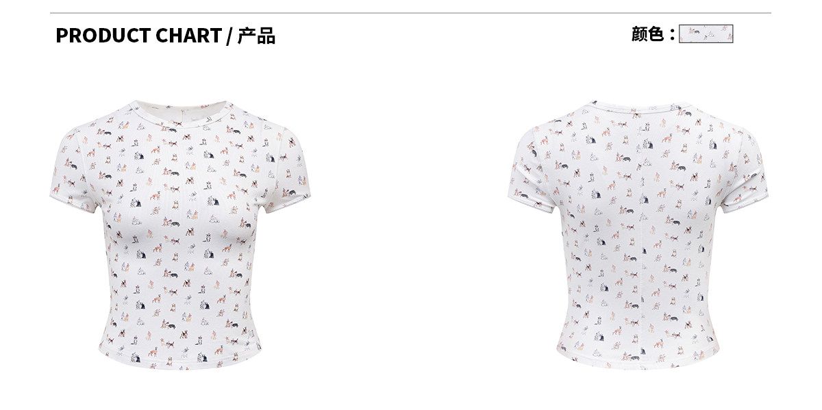 Ariseism 美式复古满印花小狗短袖T恤女夏季新款修身上衣