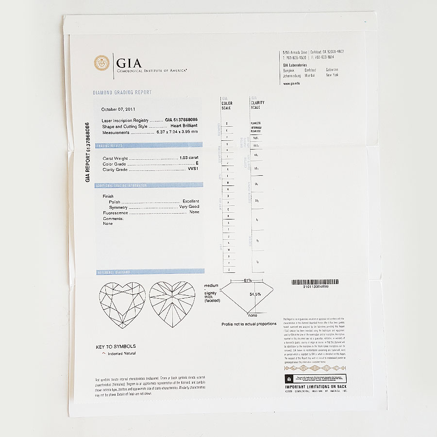 主石重量 | 1.03克拉(GIA:6137868086) |