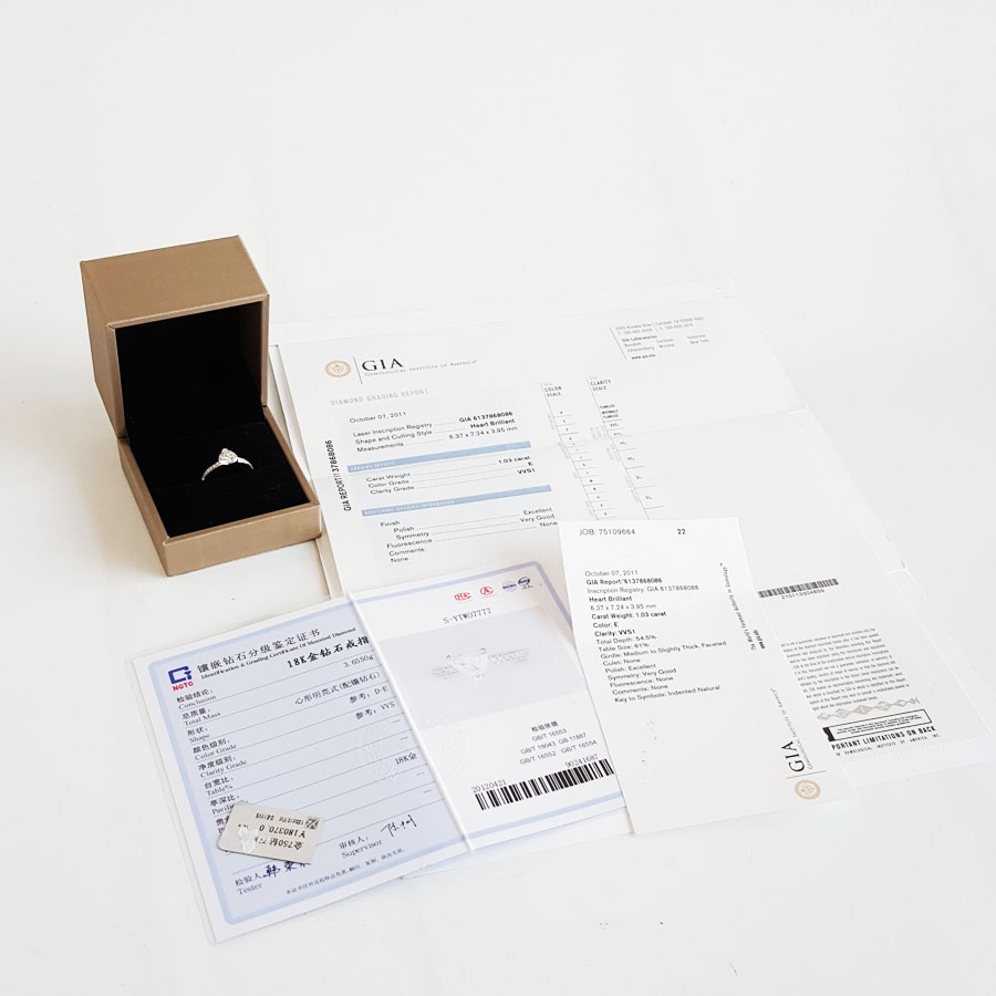 AU750白金经典简约三爪款心型1.03克拉钻石戒指14号(戒圈可改)290126NJS42