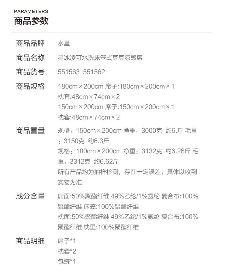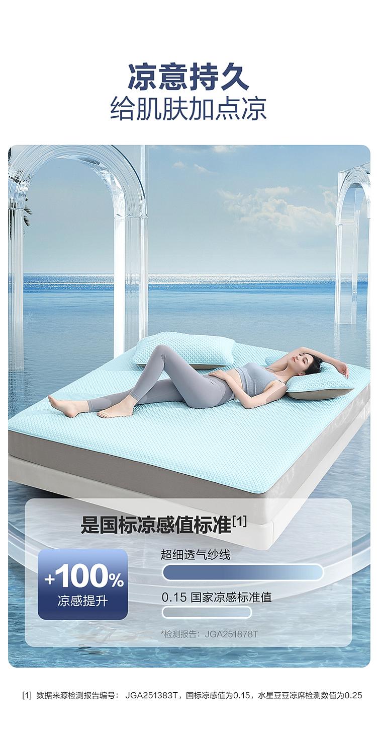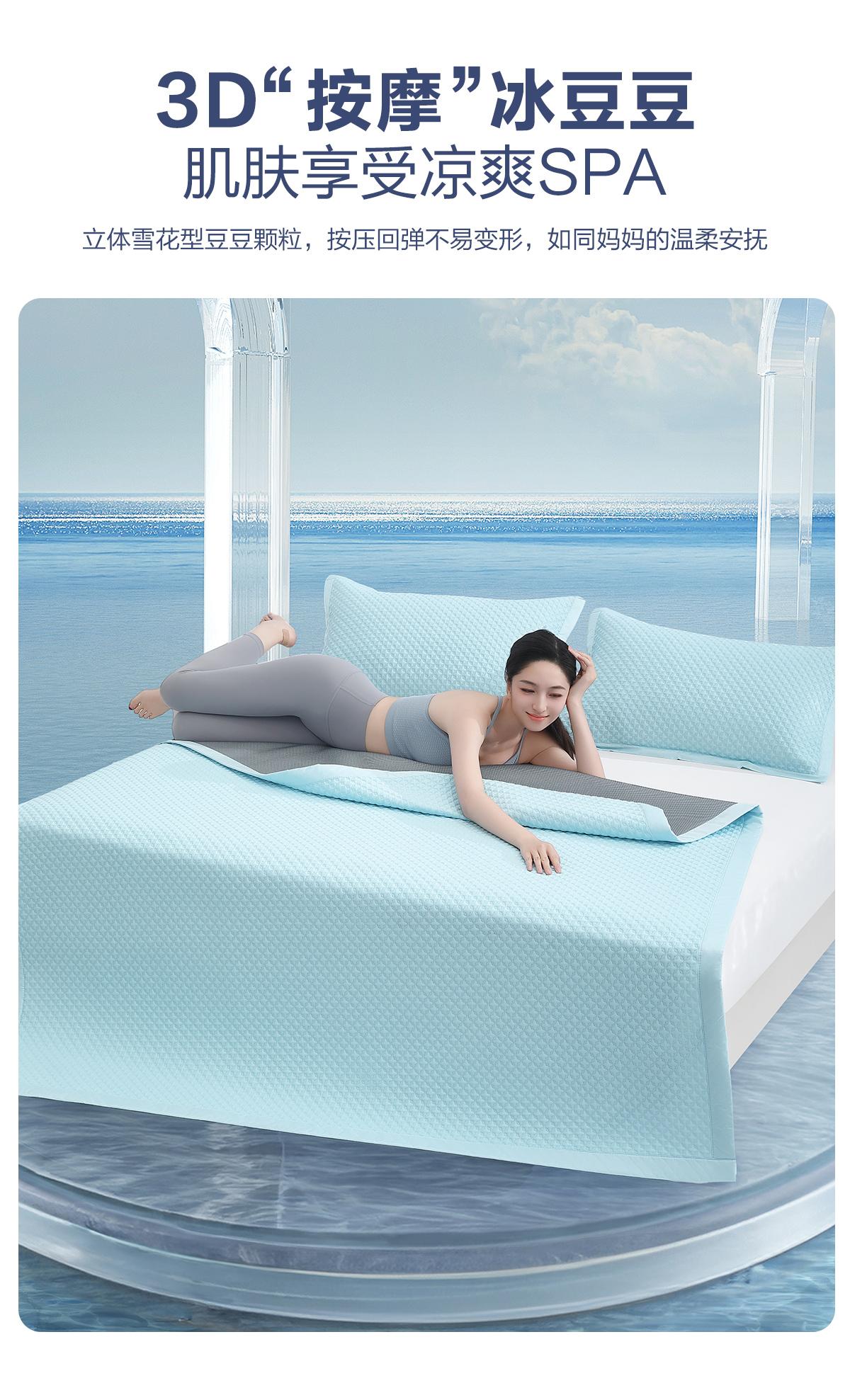 水星家纺 A类抑菌清凉透气星冰凌凉席 床单式/床笠式可水洗豆豆凉感席