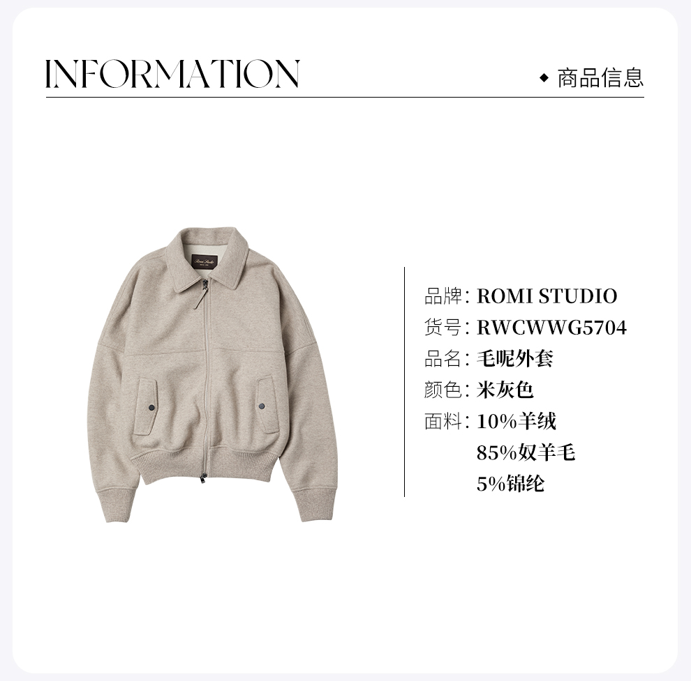 ROMI STUDIO16.5mm羊绒羊毛纱 老钱松弛感翻领毛呢外套RWCWWG5704