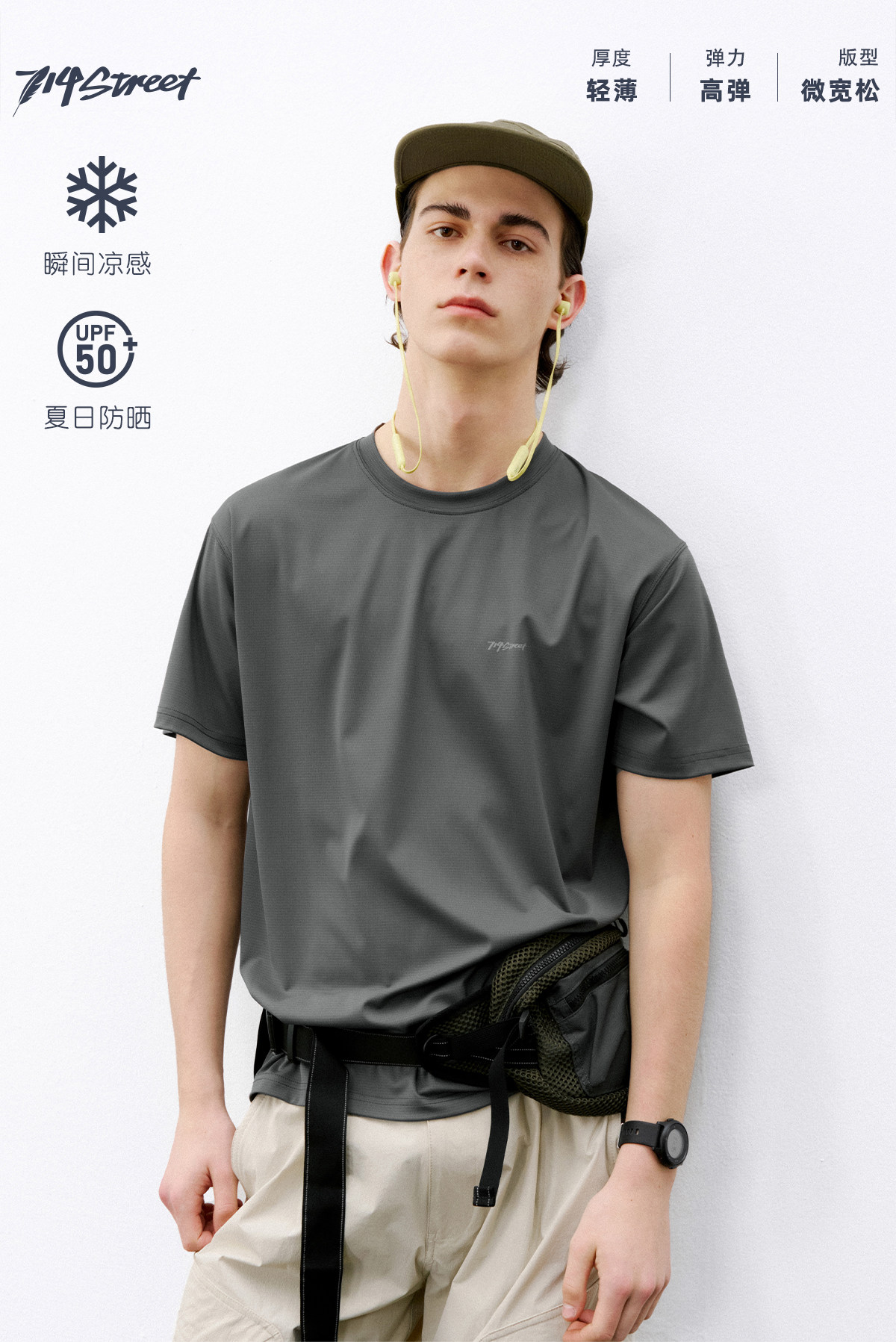 714street防晒冰感凉皮运动短袖2026夏季潮牌夜光印花弹力T恤男款