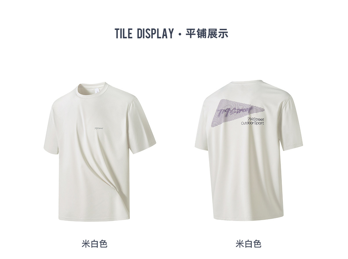 714street凉感防晒户外灯印花短袖T恤男2025夏季新款国潮宽松上衣
