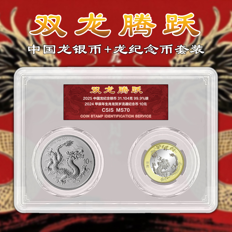 《双龙腾跃》2025版中国龙银币+龙年纪念币套装!