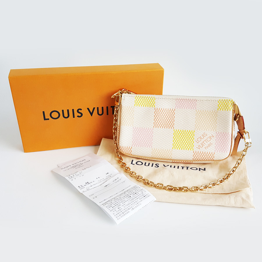 【全新未使用】LV路易威登N40642 POCHETTE ACCESSOIRES彩色棋盘格麻将包链条单肩腋下包女士031125YY40