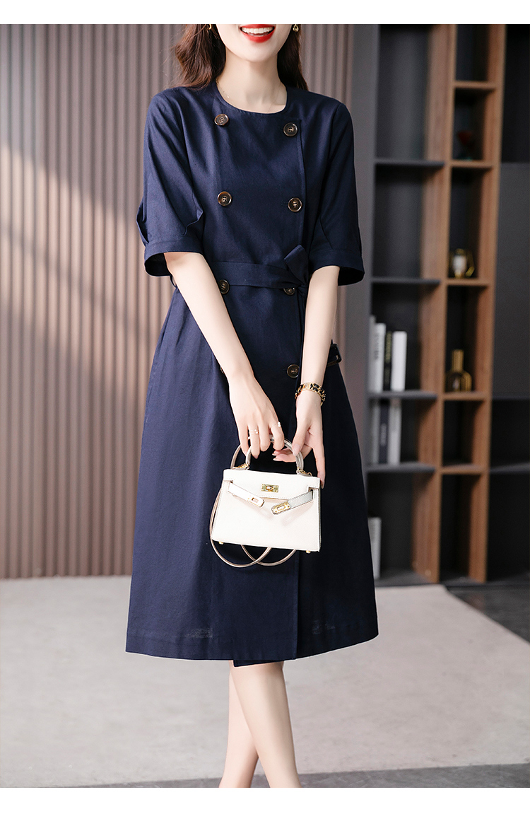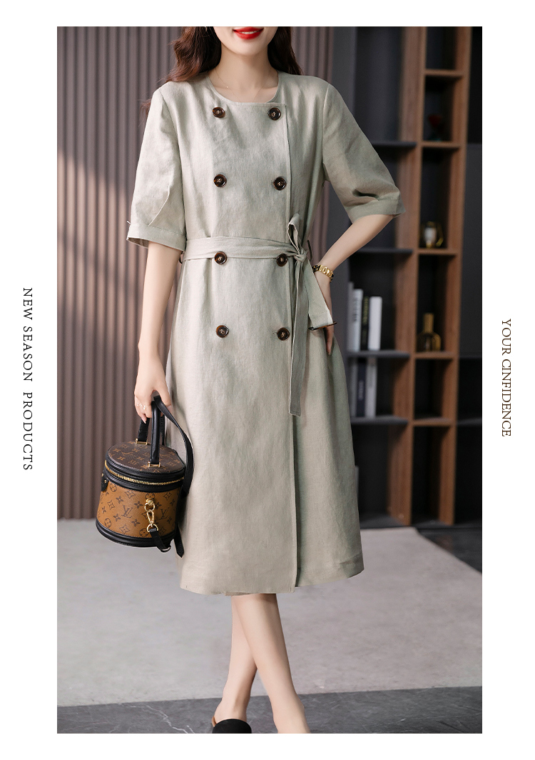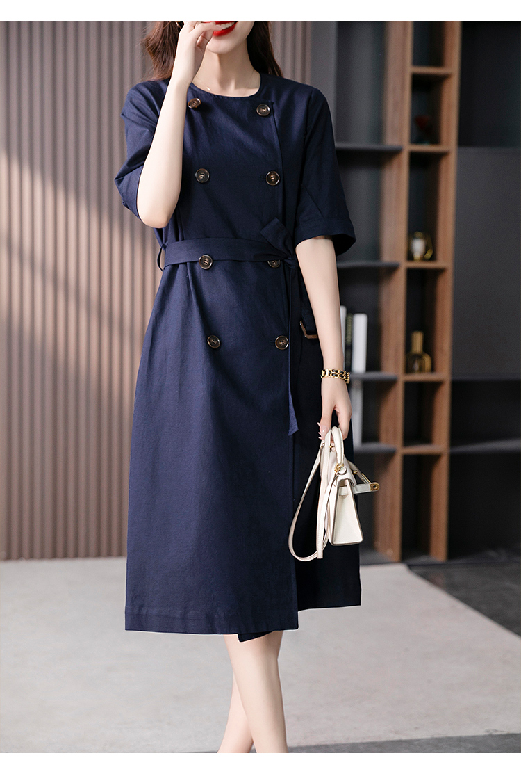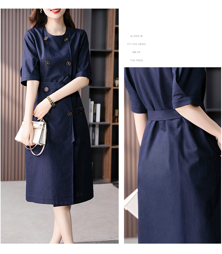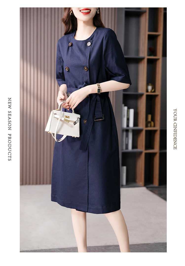 89049原形英伦风设计感双排扣连衣裙女夏2024新款韩版法式收腰茶歇裙